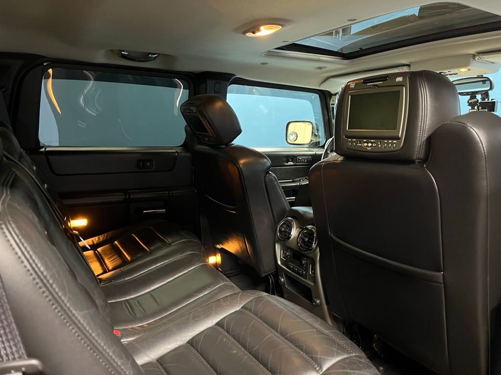 2006 Hummer H2 SUT Base VEHICLE SOLD AS-IS. We want you to shop confidently for your next used car at D-Patrick Lebanon Ford and We make it EASY! Buy this used vehicle 100% online or in-store, EASY. Saving time at the dealership, EASY! Financing, EASY! Get pre-approved online or in-store with one of our many lenders, EASY. Finding the car you love at the price you want, EASY! This vehicle’s low price is reflective of its age, condition, and mileage and we do not warrant its mechanical or overall condition. This vehicle is provided with a free to you CarFax vehicle history report. This is an AS-IS vehicle and is not available for additional service plans. *Prices listed do not include a $250 documentation fee, applicable tax, title, tags, license, or $195 service and preparation. All pricing, vehicle information, and features (such as accessories and color) are believed to be accurate, but we do not warrant or guarantee such accuracy. The prices shown above may vary from region to region, and incentives are subject to change. Some offers listed may not be available to all customers. All online sale commitments are subject to confirmation of continued availability of vehicle. Once availability is confirmed, online sale agreement becomes binding upon the parties. If any information found on the website is thought to be erroneous, please verify information with a customer service representative. See dealer for full details. Looking to sell your current vehicle? We buy cars for cash. 17" x 8.5" Aluminum Wheels, 17" x 8.5" Chrome Aluminum Wheels, 4-Wheel Disc Brakes, 4.10 Rear Axle Ratio, 9 Speakers, ABS brakes, Air Conditioning, Alloy wheels, AM/FM radio, Audio memory, Auto-dimming door mirrors, Auto-dimming Rear-View mirror, Automatic temperature control, Black Aluminum Roof Rail Handles (Set of 4), Body Color Grille w/HUMMER Letter Emblems, Brushed Aluminum Double Crossbar Roof Rack, Cassette, CD player, Chrome Aluminum Fuel Filler Door, Chrome Aluminum Hood Handles (Set of 2), Chrome Aluminum Hood Latches (Set of 2), Chrome Appearance Package, Chrome Brush Guard, Chrome Plated Assist Steps (Set of 2), Chrome Taillamp Protection (Set of 2), Compass, Driver door bin, Driver vanity mirror, Driver's Seat Mounted Armrest, Dual front impact airbags, Emergency communication system: OnStar, ETR AM/FM Stereo w/CD & Cassette, ETR AM/FM Stereo w/CD & DVD Navigation, Front & Rear Removable Black Carpeted Floormats, Front anti-roll bar, Front Bucket Seats, Front dual zone A/C, Front reading lights, Front Reclining Bucket Seats, Front wheel independent suspension, Fully automatic headlights, Garage door transmitter: Homelink, Hard Locking Tonneau Cover, Heated door mirrors, Heated front seats, Heated rear seats, Illuminated entry, Leather Seating Surfaces, Leather Shift Knob, Leather steering wheel, Luxury Series Package 1SC, Memory seat, Occupant sensing airbag, Outside temperature display, Overhead console, Panic alarm, Passenger cancellable airbag, Passenger door bin, Passenger seat mounted armrest, Passenger vanity mirror, Power door mirrors, Power driver seat, Power moonroof, Power passenger seat, Power steering, Power windows, Radio data system, Rear air conditioning, Rear anti-roll bar, Rear audio controls, Rear reading lights, Rear seat center armrest, Rear window defroster, Remote keyless entry, Roof rack: rails only, Security system, Speed control, Speed-sensing steering, Split folding rear seat, Standard Ride Suspension Package, Steering wheel mounted audio controls, Tachometer, Tilt steering wheel, Traction control, Trip computer, Uplevel Chrome Appearance Package, Variably intermittent wipers, Voltmeter, Weather band radio, XM Satellite Radio Sound System Feature. Clean CARFAX. 4D Sport Utility 4-Speed Automatic HD with Overdrive Vortec 6.0L V8 SFI 4WD Black CALL US TODAY BEFORE THIS ONE GETS AWAY-- (765) 204-6248 or shop online at www.dpatricklebanonford.com.