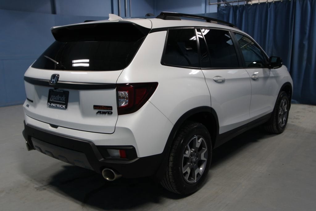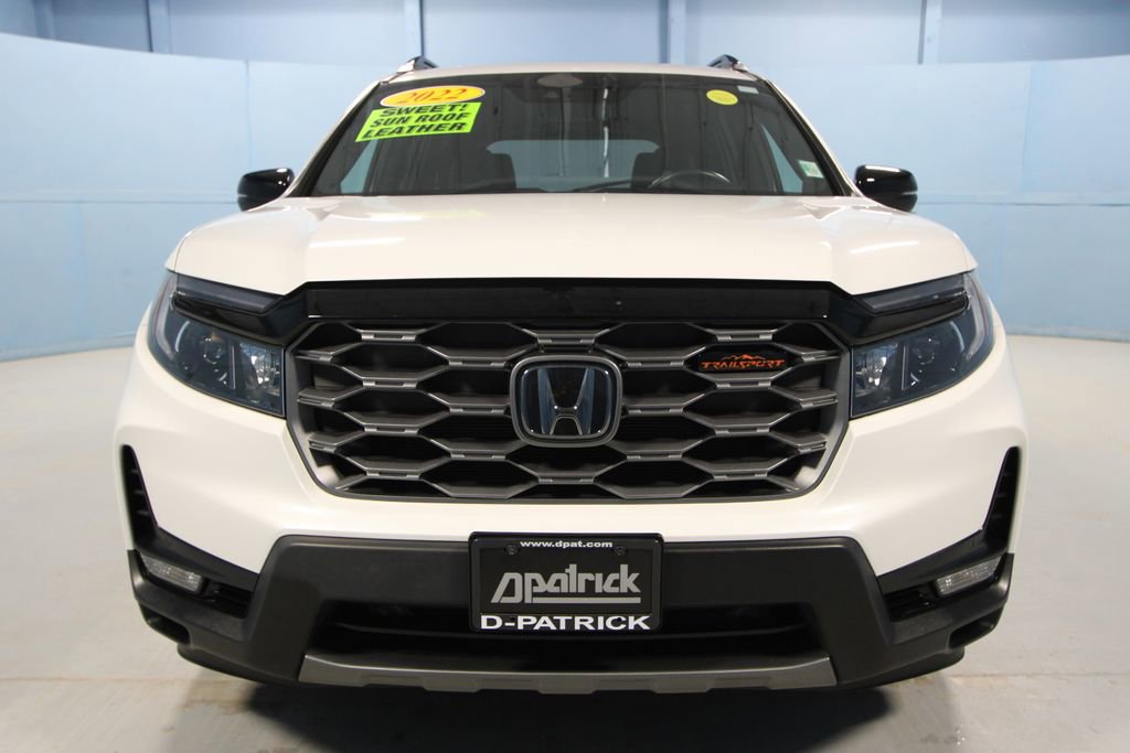 2022 Honda Passport TrailSport We want you to shop confidently for your next used car at The BIG Ford Store, D-Patrick Ford. We are located on Highway 41 and Walnut in Evansville, right next to the Lloyd Expressway. Buy this used vehicle 100% online or in-store. This pre-owned vehicle was put through an extensive inspection before hitting our lot. Because of this, we are able to offer a 3-month/3,000-mile comprehensive limited warranty. You also get our Love It or Return It 5-day, 300-mile Exchange Policy. See our website for more details on both. We also offer extended service plans, vehicle protection plans, and offer a CarFax vehicle history report. *Prices listed do not include a $250 documentation fee, applicable tax, title, tags, license, or $195 service and preparation. All pricing, vehicle information, and features (such as accessories and color) are believed to be accurate, but we do not warrant or guarantee such accuracy. The prices shown above may vary from region to region, and incentives are subject to change. Some offers listed may not be available to all customers. All online sale commitments are subject to confirmation of continued availability of vehicle. Once availability is confirmed, online sale agreement becomes binding upon the parties. If any information found on the website is thought to be erroneous, please verify information with a customer service representative. See dealer for full details. Looking to sell your current vehicle? We buy cars for cash. Every test drive at D-Patrick Ford in Evansville earns $10 to a local charity. Schedule your test drive today! 4-Wheel Disc Brakes, 4.334 Axle Ratio, 7 Speakers, A/V remote: CabinControl, ABS brakes, Air Conditioning, Alloy wheels, AM/FM radio: SiriusXM, Apple CarPlay/Android Auto, Auto High-beam Headlights, Auto-dimming Rear-View mirror, Automatic temperature control, Blind Spot Information (BSI) System warning, Brake assist, Bumpers: body-color, Compass, Delay-off headlights, Driver door bin, Driver vanity mirror, Driver's Seat Mounted Armrest, Dual front impact airbags, Dual front side impact airbags, Electronic Stability Control, Emergency communication system: HondaLink Assist, Exterior Parking Camera Rear, Forward collision: Collision Mitigation Braking System (CMBS) + FCW mitigation, Four wheel independent suspension, Front anti-roll bar, Front Bucket Seats, Front Center Armrest, Front dual zone A/C, Front fog lights, Front reading lights, Fully automatic headlights, Garage door transmitter: HomeLink, Heated door mirrors, Heated Front Bucket Seats, Heated front seats, Illuminated entry, Lane departure: Lane Keeping Assist System (LKAS) active, Leather-Trimmed Seats w/Orange Stitching, Low tire pressure warning, Memory seat, Navigation system: Honda Satellite-Linked Navigation System, Occupant sensing airbag, Outside temperature display, Overhead airbag, Overhead console, Panic alarm, Passenger door bin, Passenger seat mounted armrest, Passenger vanity mirror, Power door mirrors, Power driver seat, Power Liftgate, Power moonroof, Power passenger seat, Power steering, Power windows, Radio data system, Radio: 215-Watt Audio System w/7 Speakers, Rear air conditioning, Rear anti-roll bar, Rear reading lights, Rear seat center armrest, Rear window defroster, Rear window wiper, Remote keyless entry, Roof rack: rails only, Security system, Speed control, Speed-sensing steering, Split folding rear seat, Spoiler, Steering wheel mounted audio controls, Tachometer, Telescoping steering wheel, Tilt steering wheel, Traction control, Trip computer, Turn signal indicator mirrors, Variably intermittent wipers, Wheels: 18 Machine-Finish Alloy. CARFAX One-Owner. Clean CARFAX. 4D Sport Utility TrailSport 9-Speed Automatic 3.5L V6 24V SOHC i-VTEC AWD Platinum White Pearl CALL TODAY (812) 625-4823 OR SHOP ONLINE AT WWW.DPATRICKFORD.COM.