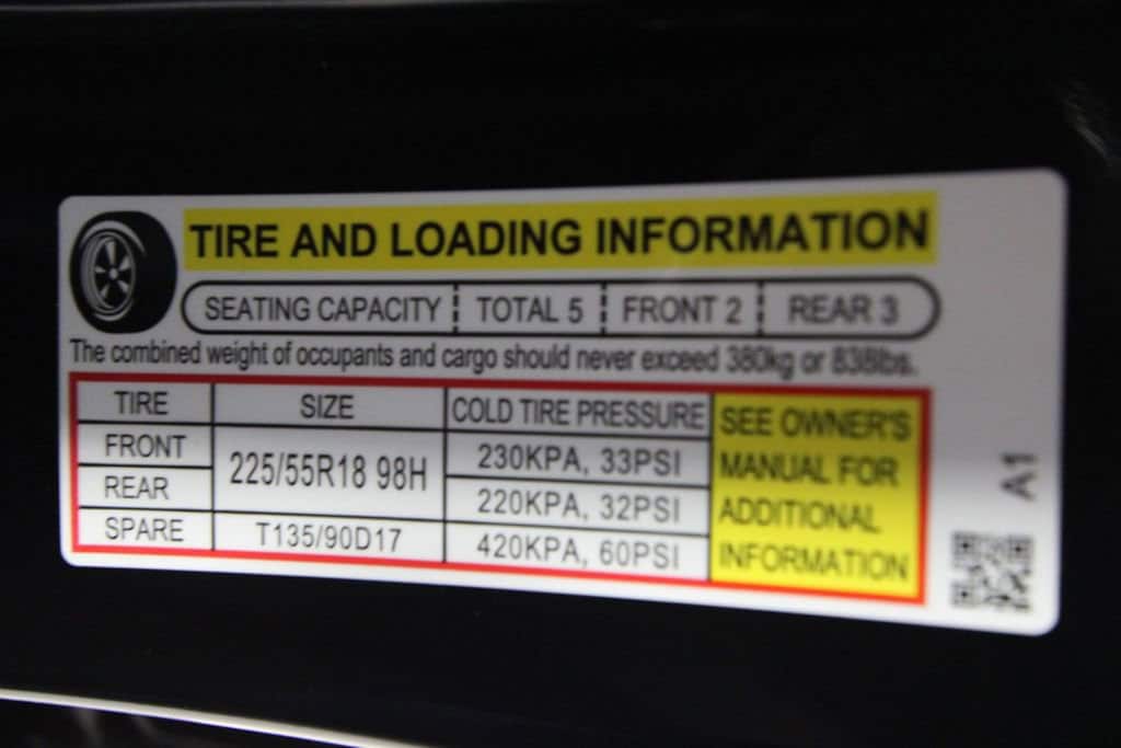 • Front tires: 225/55HR18.0
