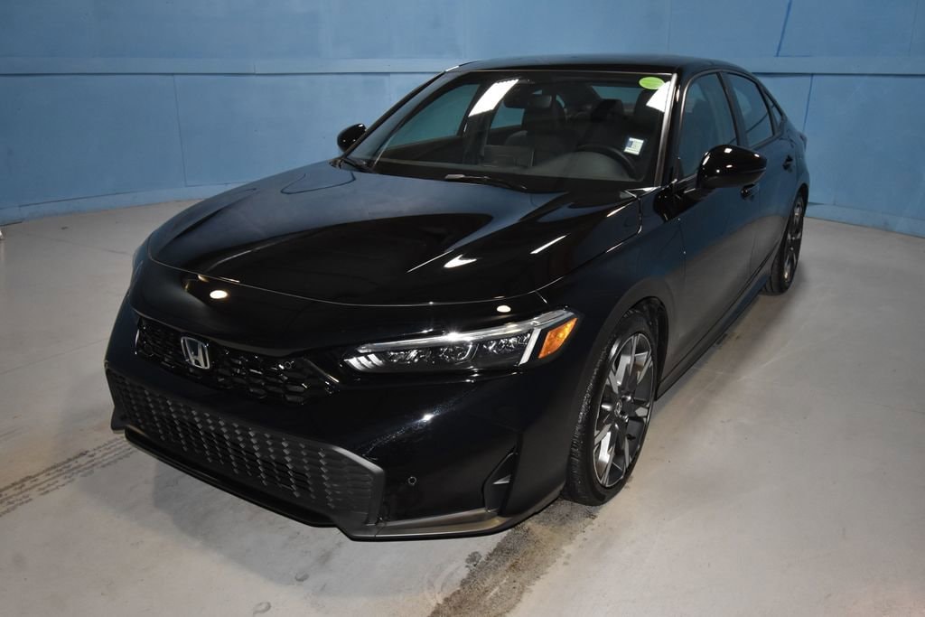 2025 Honda Civic Hybrid Sport **Prices listed do not include a $250 documentation fee, applicable tax, title, tags, license, or $195 service and preparation. All pricing, vehicle information, and features (such as accessories and color) are believed to be accurate, but we do not warrant or guarantee such accuracy. The prices shown above may vary from region to region, and incentives are subject to change. Some offers listed may not be available to all customers. All online sale commitments are subject to confirmation of continued availability of vehicle. Once availability is confirmed, online sale agreement becomes binding upon the parties. If any information found on the website is thought to be erroneous, please verify information with a customer service representative. See dealer for full details. 2.0L 16V DOHC, 4-Wheel Disc Brakes, 8 Speakers, ABS brakes, Adaptive Cruise Control: Adaptive Cruise Control (ACC) with Low-Speed Follow, Air Conditioning, Alloy wheels, AM/FM radio, Apple CarPlay/Android Auto, Auto High-beam Headlights, Automatic temperature control, Blind Spot Information (BSI) System warning, Brake assist, Bumpers: body-color, Cloth/Leatherette Seat Trim, Delay-off headlights, Driver door bin, Driver vanity mirror, Dual front impact airbags, Dual front side impact airbags, Electronic Stability Control, Emergency communication system: HondaLink, Exterior Parking Camera Rear, Four wheel independent suspension, Front anti-roll bar, Front Bucket Seats, Front Center Armrest, Front dual zone A/C, Front reading lights, Fully automatic headlights, Heated door mirrors, Heated Front Bucket Seats, Heated front seats, Illuminated entry, Knee airbag, Leather Shift Knob, Leather steering wheel, Low tire pressure warning, Occupant sensing airbag, Outside temperature display, Overhead airbag, Panic alarm, Passenger door bin, Passenger vanity mirror, Power door mirrors, Power moonroof, Power steering, Power windows, Radio data system, Radio: 180-Watt Audio System, Rear anti-roll bar, Rear seat center armrest, Rear side impact airbag, Rear window defroster, Remote keyless entry, Security system, Speed control, Speed-sensing steering, Split folding rear seat, Steering wheel mounted audio controls, Tachometer, Telescoping steering wheel, Tilt steering wheel, Traction control, Trip computer, Variably intermittent wipers, Wheels: 18 Gloss Black Alloy, 2.0L 16V DOHC. CARFAX One-Owner. Clean CARFAX. 4D Sedan Sport eCVT 2.0L 16V DOHC FWD Crystal Black Pearl (812) 477-6201 and shop online at www.dpathonda.com.
