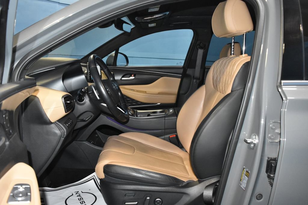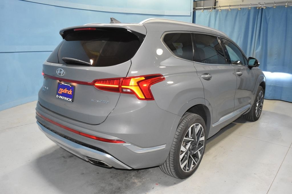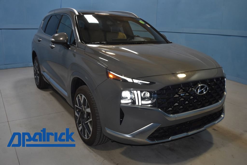 2023 Hyundai Santa Fe Calligraphy We want you to shop confidently for your next used car at D-Patrick Nissan. Buy this used vehicle 100% online or in-store. This pre-owned vehicle was put through an extensive inspection before hitting our lot. Because of this, we are able to offer a 3-month/3,000-mile comprehensive limited warranty. You also get our Love It or Return It 5-day, 300-mile Exchange Policy. See our website for more details on both. We also offer extended warranties, additional protection plans, and offer a CarFax vehicle history report. We have a large selection of all makes and models in-stock today at the MEGASTORE. Looking to sell your current vehicle? We want to buy your car! *Prices listed do not include a $250 documentation fee, applicable tax, title, tags, license, or $195 service and preparation. All pricing, vehicle information, and features (such as accessories and color) are believed to be accurate, but we do not warrant or guarantee such accuracy. The prices shown above may vary from region to region, and incentives are subject to change. Some offers listed may not be available to all customers. All online sale commitments are subject to confirmation of continued availability of vehicle. Once availability is confirmed, online sale agreement becomes binding upon the parties. If any information found on the website is thought to be erroneous, please verify information with a customer service representative. See dealer for full details. Looking to sell your current vehicle? We buy cars for cash. AWD, Beige Leather, 12 Speakers, 4-Wheel Disc Brakes, ABS brakes, Air Conditioning, Alloy wheels, AM/FM radio: SiriusXM, Apple CarPlay & Android Auto, Auto High-beam Headlights, Auto-dimming Rear-View mirror, Automatic temperature control, Axle Ratio: 3.316, Brake assist, Bumper Applique, Bumpers: body-color, Cargo Cover/Screen, Cargo Net, Cargo Tray, Carpeted Floor Mats, Delay-off headlights, Driver door bin, Driver vanity mirror, Dual front impact airbags, Dual front side impact airbags, Electronic Stability Control, Emergency communication system, Exterior Parking Camera Rear, First Aid Kit, Four wheel independent suspension, Front anti-roll bar, Front Bucket Seats, Front Center Armrest, Front dual zone A/C, Front reading lights, Fully automatic headlights, Garage door transmitter: HomeLink, harman/kardon® Speakers, Heads-Up Display, Heated & Ventilated Front Bucket Seats, Heated door mirrors, Heated front seats, Heated rear seats, Heated steering wheel, Illuminated entry, Leather steering wheel, Low tire pressure warning, Memory seat, Navigation System, Occupant sensing airbag, Option Group 01, Outside temperature display, Overhead airbag, Overhead console, Panic alarm, Passenger door bin, Passenger vanity mirror, Power door mirrors, Power driver seat, Power Liftgate, Power moonroof, Power passenger seat, Power steering, Power windows, Quilted Premium Nappa Leather Seat Trim, Radio: AM/FM Harman Kardon Display Audio, Rain sensing wipers, Rear anti-roll bar, Rear seat center armrest, Rear window defroster, Rear window wiper, Remote keyless entry, Security system, Speed control, Speed-sensing steering, Split folding rear seat, Spoiler, Steering wheel mounted audio controls, Tachometer, Telescoping steering wheel, Tilt steering wheel, Traction control, Trip computer, Turn signal indicator mirrors, Variably intermittent wipers, Ventilated front seats, Wheel Locks, Wheels: 20 x 8.0J Alloy, AWD, Beige Leather. Clean CARFAX. 4D Sport Utility Calligraphy Shiftronic 2.5L I4 AWD Hampton Gray CALL TODAY 812-473-6500 and shop online at www.dpatricknissan.com.