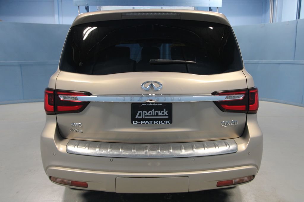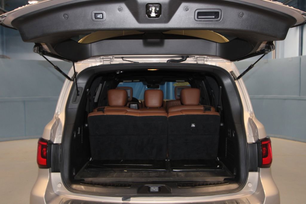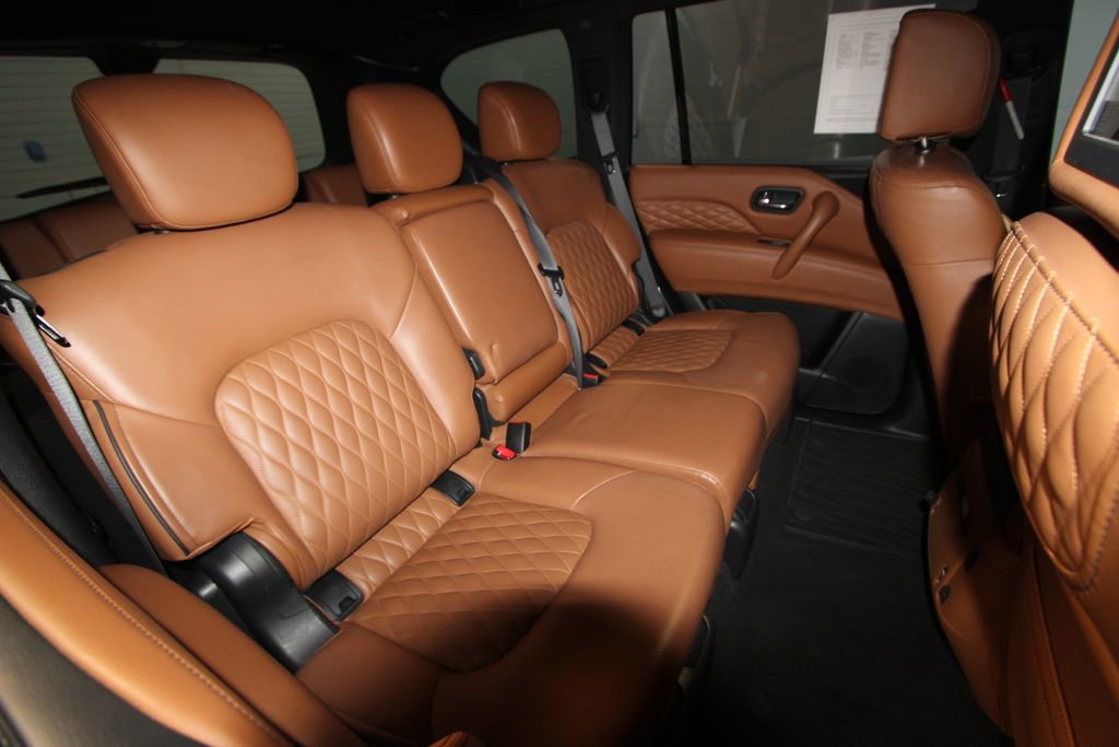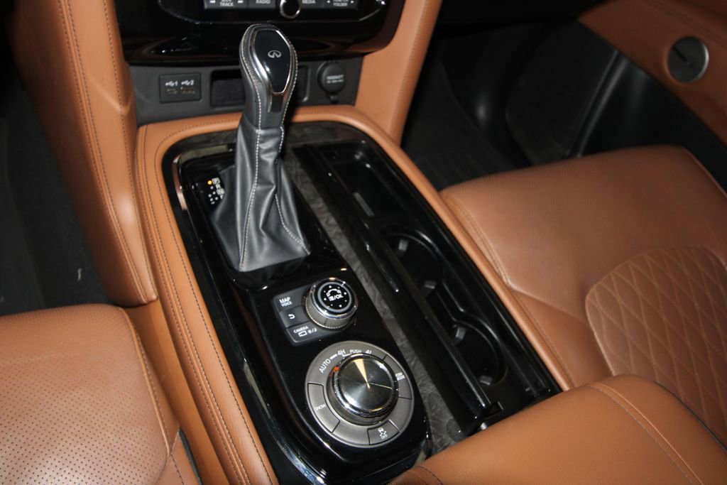 Every test drive at D-Patrick Ford in Evansville earns $10 to a local charity. Schedule your test drive today! 17 Speakers, 2.937 Axle Ratio, 3rd row seats: split-bench, 4-Wheel Disc Brakes, A/V remote, ABS brakes, Air Conditioning, All-Season Floor Mats, All-Season Package, Alloy wheels, AM/FM radio: SiriusXM, Anti-whiplash front head restraints, Apple CarPlay/Android Auto, Auto High-beam Headlights, Auto tilt-away steering wheel, Auto-dimming door mirrors, Auto-dimming Rear-View mirror, Auto-leveling suspension, Automatic temperature control, Brake assist, Bumpers: body-color, Cargo Protector, CD player, Climate Controlled Front Bucket Seats, Compass, Delay-off headlights, Driver door bin, Driver vanity mirror, Dual front impact airbags, Dual front side impact airbags, DVD-Audio, Electronic Stability Control, Emergency communication system: INFINITI Connection, Four wheel independent suspension, Front anti-roll bar, Front Bucket Seats, Front Center Armrest, Front dual zone A/C, Front fog lights, Front reading lights, Fully automatic headlights, Garage door transmitter: HomeLink, Headlight cleaning, Headphones, Heated door mirrors, Heated front seats, Heated rear seats, Heated steering wheel, Illuminated entry, Leather Shift Knob, Leather steering wheel, Literature Kit, Low tire pressure warning, Memory seat, Navigation system: INFINITI InTouch Navigation, Occupant sensing airbag, Outside temperature display, Overhead airbag, Overhead console, Panic alarm, Passenger door bin, Passenger vanity mirror, Power door mirrors, Power driver seat, Power Liftgate, Power moonroof, Power passenger seat, Power steering, Power windows, Radiant Illuminated Kick Plates, Radio data system, Radio: Bose Performance Audio System w/17 Speakers, Rain sensing wipers, Rear air conditioning, Rear anti-roll bar, Rear audio controls, Rear reading lights, Rear seat center armrest, Rear window defroster, Rear window wiper, Reclining 3rd row seat, Remote keyless entry, Security system, Semi-Aniline Leather Appointed Seats, Speed control, Speed-sensing steering, Split folding rear seat, Spoiler, Steering wheel memory, Steering wheel mounted audio controls, Tachometer, Telescoping steering wheel, Tilt steering wheel, Traction control, Trip computer, Turn signal indicator mirrors, Variably intermittent wipers, Ventilated front seats, Voltmeter, Welcome Lighting, Wheels: 22 x 8.0 Forged Aluminum-Alloy. CARFAX One-Owner. Clean CARFAX. 4D Sport Utility Sensory 7-Speed Automatic 5.6L V8 4WD Champagne Quartz CALL TODAY (812) 625-4823 OR SHOP ONLINE AT WWW.DPATRICKFORD.COM.