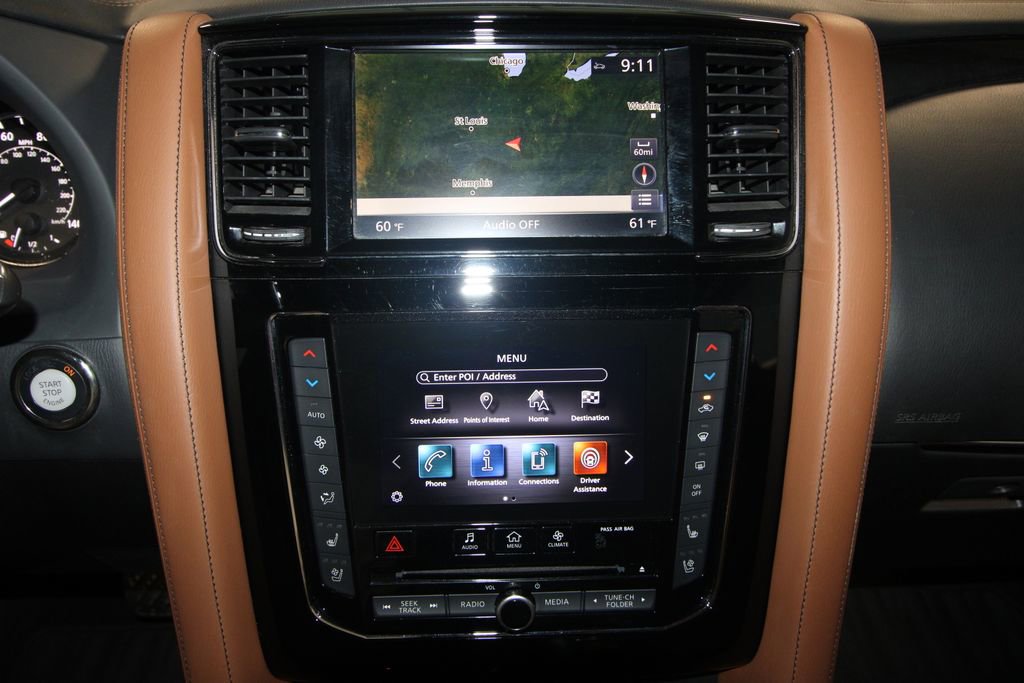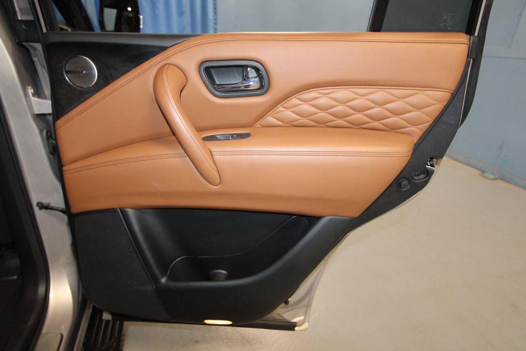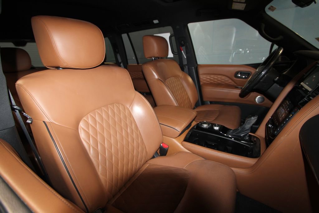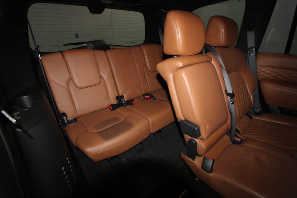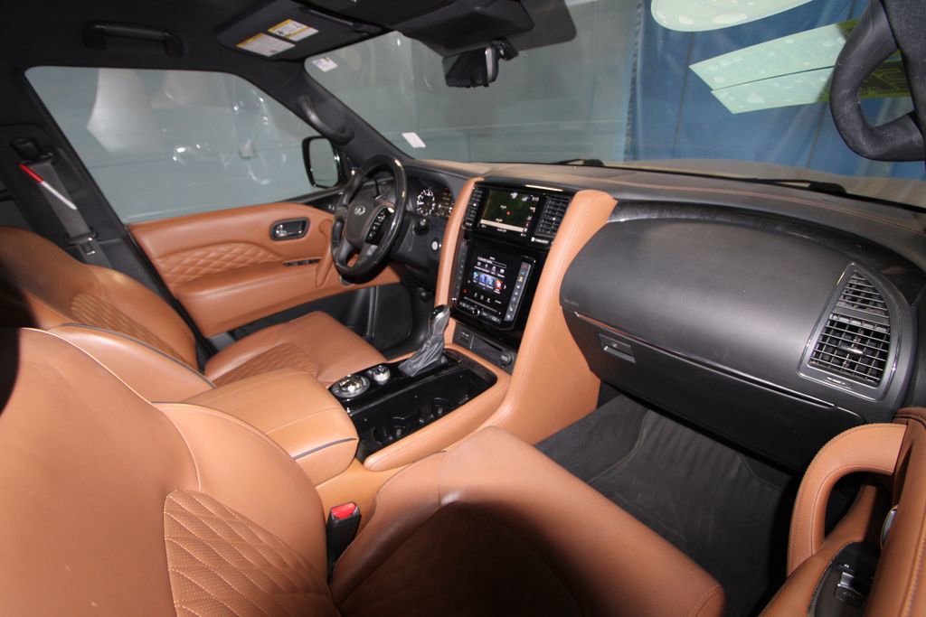 Every test drive at D-Patrick Ford in Evansville earns $10 to a local charity. Schedule your test drive today! 17 Speakers, 2.937 Axle Ratio, 3rd row seats: split-bench, 4-Wheel Disc Brakes, A/V remote, ABS brakes, Air Conditioning, All-Season Floor Mats, All-Season Package, Alloy wheels, AM/FM radio: SiriusXM, Anti-whiplash front head restraints, Apple CarPlay/Android Auto, Auto High-beam Headlights, Auto tilt-away steering wheel, Auto-dimming door mirrors, Auto-dimming Rear-View mirror, Auto-leveling suspension, Automatic temperature control, Brake assist, Bumpers: body-color, Cargo Protector, CD player, Climate Controlled Front Bucket Seats, Compass, Delay-off headlights, Driver door bin, Driver vanity mirror, Dual front impact airbags, Dual front side impact airbags, DVD-Audio, Electronic Stability Control, Emergency communication system: INFINITI Connection, Four wheel independent suspension, Front anti-roll bar, Front Bucket Seats, Front Center Armrest, Front dual zone A/C, Front fog lights, Front reading lights, Fully automatic headlights, Garage door transmitter: HomeLink, Headlight cleaning, Headphones, Heated door mirrors, Heated front seats, Heated rear seats, Heated steering wheel, Illuminated entry, Leather Shift Knob, Leather steering wheel, Literature Kit, Low tire pressure warning, Memory seat, Navigation system: INFINITI InTouch Navigation, Occupant sensing airbag, Outside temperature display, Overhead airbag, Overhead console, Panic alarm, Passenger door bin, Passenger vanity mirror, Power door mirrors, Power driver seat, Power Liftgate, Power moonroof, Power passenger seat, Power steering, Power windows, Radiant Illuminated Kick Plates, Radio data system, Radio: Bose Performance Audio System w/17 Speakers, Rain sensing wipers, Rear air conditioning, Rear anti-roll bar, Rear audio controls, Rear reading lights, Rear seat center armrest, Rear window defroster, Rear window wiper, Reclining 3rd row seat, Remote keyless entry, Security system, Semi-Aniline Leather Appointed Seats, Speed control, Speed-sensing steering, Split folding rear seat, Spoiler, Steering wheel memory, Steering wheel mounted audio controls, Tachometer, Telescoping steering wheel, Tilt steering wheel, Traction control, Trip computer, Turn signal indicator mirrors, Variably intermittent wipers, Ventilated front seats, Voltmeter, Welcome Lighting, Wheels: 22 x 8.0 Forged Aluminum-Alloy. CARFAX One-Owner. Clean CARFAX. 4D Sport Utility Sensory 7-Speed Automatic 5.6L V8 4WD Champagne Quartz CALL TODAY (812) 625-4823 OR SHOP ONLINE AT WWW.DPATRICKFORD.COM.