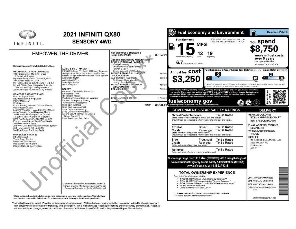 2021 INFINITI QX80 Sensory We want you to shop confidently for your next used car at The BIG Ford Store, D-Patrick Ford. We are located on Highway 41 and Walnut in Evansville, right next to the Lloyd Expressway.