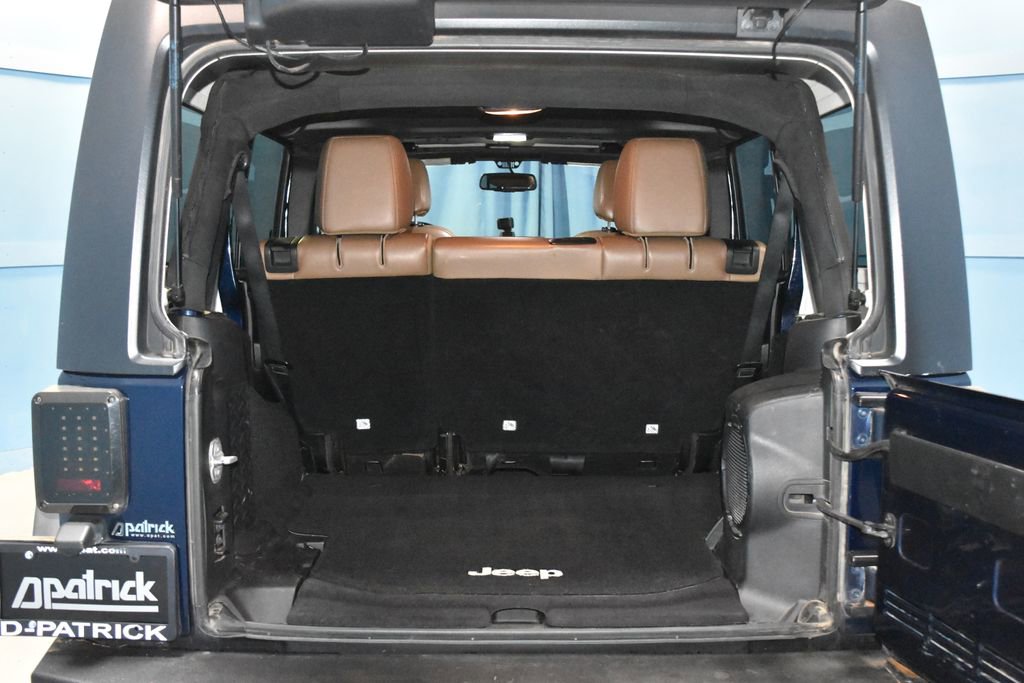 2013 Jeep Wrangler Unlimited Sahara VEHICLE SOLD AS-IS. We want you to shop confidently for your next used car at D-Patrick Honda where we are locally owned and community driven. This vehicle’s low price is reflective of its age, condition, and mileage and we do not warrant its mechanical or overall condition. This vehicle is provided with a CarFax vehicle history report. This is an AS-IS vehicle and is not available for additional service plans. *Prices listed do not include a $250 documentation fee, applicable tax, title, tags, license, or $195 service and preparation. All pricing, vehicle information, and features (such as accessories and color) are believed to be accurate, but we do not warrant or guarantee such accuracy. The prices shown above may vary from region to region, and incentives are subject to change. Some offers listed may not be available to all customers. All online sale commitments are subject to confirmation of continued availability of vehicle. Once availability is confirmed, online sale agreement becomes binding upon the parties. If any information found on the website is thought to be erroneous, please verify information with a customer service representative. See dealer for full details. Check out our D-Patrick Honda Helping Kids program, and nominate someone today. Looking to sell your current vehicle? We buy cars for cash. 18 x 7.5 Polished Satin Carbon Wheels, 3.21 Rear Axle Ratio, 4-Wheel Disc Brakes, 7 Speakers, ABS brakes, Air Conditioning, Alloy wheels, AM/FM radio: SIRIUS, Audio Jack Input for Mobile Devices, Auto-dimming Rear-View mirror, Brake assist, CD player, Cloth Bucket Seats, Compass, Driver door bin, Driver vanity mirror, Dual front impact airbags, Electronic Stability Control, Front anti-roll bar, Front Bucket Seats, Front Center Armrest w/Storage, Front fog lights, Front reading lights, Fully automatic headlights, Heated door mirrors, Heavy Duty Suspension w/Gas Shocks, Illuminated entry, Integrated roll-over protection, Leather steering wheel, Low tire pressure warning, Occupant sensing airbag, Outside temperature display, Panic alarm, Passenger door bin, Passenger vanity mirror, Power door mirrors, Power steering, Power windows, Radio data system, Radio: Uconnect 130 AM/FM/CD/MP3, Rear anti-roll bar, Remote keyless entry, Security system, Speed control, Split folding rear seat, Steering wheel mounted audio controls, Sunrider Soft Top, Tachometer, Tilt steering wheel, Traction control, Trip computer, Variably intermittent wipers. 4D Sport Utility Unlimited Sahara 5-Speed Automatic 3.6L V6 24V VVT 4WD True Blue Pearlcoat (812) 477-6201 and shop online at www.dpathonda.com.