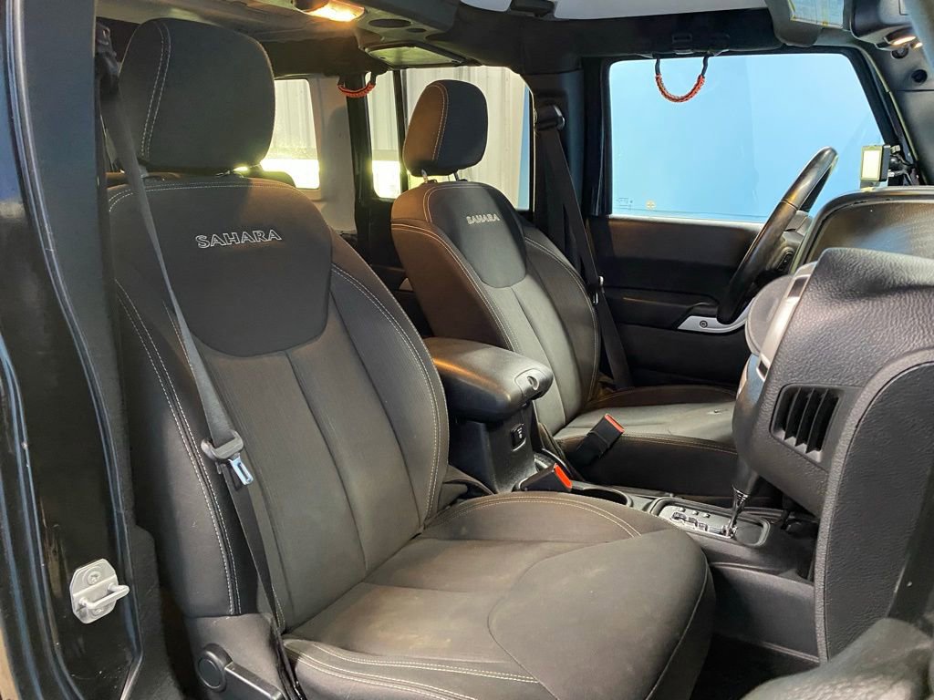 2017 Jeep Wrangler Unlimited Sahara We want you to shop confidently for your next used car at D-Patrick Lebanon Ford and We make it EASY! Buy this used vehicle 100% online or in-store, EASY. Saving time at the dealership, EASY! Financing, EASY! Get pre-approved online or in-store with one of our many lenders, EASY. Finding the car you love at the price you want, EASY! We also offer extended service plans, vehicle protection plans, and offer a free to you CarFax vehicle history report. *Prices listed do not include a $250 documentation fee, applicable tax, title, tags, license, or $195 service and preparation. All pricing, vehicle information, and features (such as accessories and color) are believed to be accurate, but we do not warrant or guarantee such accuracy. The prices shown above may vary from region to region, and incentives are subject to change. Some offers listed may not be available to all customers. All online sale commitments are subject to confirmation of continued availability of vehicle. Once availability is confirmed, online sale agreement becomes binding upon the parties. If any information found on the website is thought to be erroneous, please verify information with a customer service representative. See dealer for full details. Looking to sell your current vehicle? We buy cars for cash. 18" x 7.5" Polished Satin Carbon Wheels, 3.21 Rear Axle Ratio, 4-Wheel Disc Brakes, 8 Speakers, ABS brakes, Air Conditioning, Alloy wheels, AM/FM radio: SiriusXM, Audio Jack Input for Mobile Devices, Auto-dimming Rear-View mirror, Black 3-Piece Hard Top, Body Color Appliques Front Bumper, Body Color Appliques Rear Bumper, Body Color/Accent Color Grille, Brake assist, CD player, Cloth Seats w/Adjustable Head Restraints, Compass, Delete Sunrider Soft Top, Driver door bin, Driver vanity mirror, Dual front impact airbags, Electronic Stability Control, Freedom Panel Storage Bag, Front anti-roll bar, Front Bucket Seats, Front Center Armrest w/Storage, Front fog lights, Front reading lights, Fully automatic headlights, Heated door mirrors, Heavy Duty Suspension w/Gas Shocks (DISC), Illuminated entry, Integrated roll-over protection, Leather steering wheel, Low tire pressure warning, Manufacturer's Statement of Origin, Occupant sensing airbag, Outside temperature display, Panic alarm, Passenger door bin, Passenger vanity mirror, Power door mirrors, Power steering, Power windows, Quick Order Package 24G, Radio data system, Radio: 130, Rear anti-roll bar, Rear Window Defroster, Rear Window Wiper/Washer, Remote keyless entry, Security system, Speed control, Split folding rear seat, Steering wheel mounted audio controls, Supplemental Front Seat Side Airbags, Tachometer, Tilt steering wheel, Traction control, Trip computer, Variably intermittent wipers. 4D Sport Utility Unlimited Sahara 5-Speed Automatic 3.6L V6 24V VVT 4WD Black Clearcoat CALL US TODAY BEFORE THIS ONE GETS AWAY-- (765) 204-6248 or shop online at www.dpatricklebanonford.com.