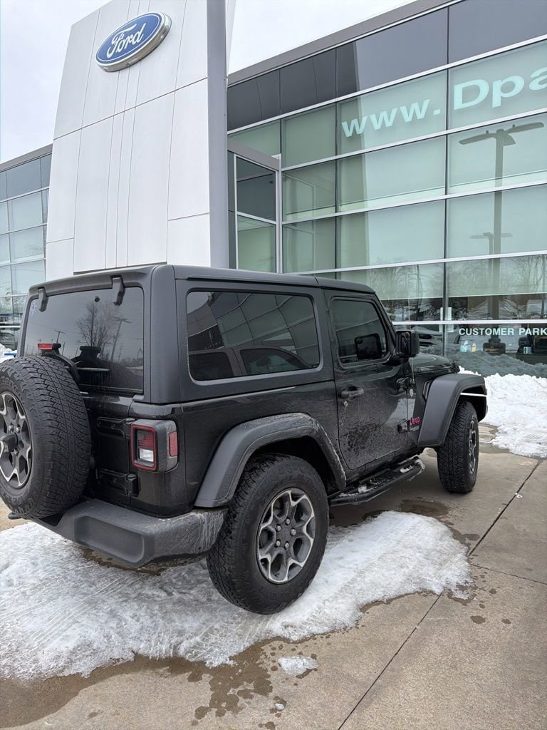 2021 Jeep Wrangler Sport S Recent Arrival! We want you to shop confidently for your next used car at The BIG Ford Store, D-Patrick Ford. We are located on Highway 41 and Walnut in Evansville, right next to the Lloyd Expressway. Buy this used vehicle 100% online or in-store. This pre-owned vehicle was put through an extensive inspection before hitting our lot. Because of this, we are able to offer a 3-month/3,000-mile comprehensive limited warranty. You also get our Love It or Return It 5-day, 300-mile Exchange Policy. See our website for more details on both. We also offer extended service plans, vehicle protection plans, and offer a CarFax vehicle history report. *Prices listed do not include a $250 documentation fee, applicable tax, title, tags, license, or $195 service and preparation. All pricing, vehicle information, and features (such as accessories and color) are believed to be accurate, but we do not warrant or guarantee such accuracy. The prices shown above may vary from region to region, and incentives are subject to change. Some offers listed may not be available to all customers. All online sale commitments are subject to confirmation of continued availability of vehicle. Once availability is confirmed, online sale agreement becomes binding upon the parties. If any information found on the website is thought to be erroneous, please verify information with a customer service representative. See dealer for full details. Looking to sell your current vehicle? We buy cars for cash. Every test drive at D-Patrick Ford in Evansville earns $10 to a local charity. Schedule your test drive today! 110 mph Vehicle Max Speed Calibration, 3.45 Rear Axle Ratio, 4-Wheel Disc Brakes, 7.0 Touchscreen Display, 8 Speakers, ABS brakes, Air Conditioning, Air Filtering, AM/FM radio, Automatic Headlamps, Black 3-Piece Hard Top, Brake assist, Cloth Low-Back Bucket Seats, Cluster 7.0 TFT Color Display, Compass, Convenience Group, Deep Tint Sunscreen Windows, Delay-off headlights, Driver door bin, Driver vanity mirror, Dual front impact airbags, Dual front side impact airbags, Electronic Stability Control, For More Info Call 800-643-2112, Front anti-roll bar, Front Bucket Seats, Front Center Armrest w/Storage, Front fog lights, Front reading lights, Google Android Auto, Integrated Center Stack Radio, Integrated roll-over protection, Jeep Trail Rated Kit, Leather Wrapped Steering Wheel, Low tire pressure warning, MOPAR Hardtop Headliner, Normal Duty Suspension, Occupant sensing airbag, Outside temperature display, ParkView Rear Back-Up Camera, Passenger door bin, Passenger vanity mirror, Power Heated Mirrors, Power steering, Quick Order Package 22S Sport S, R1234YF A/C Refrigerant, Radio data system, Radio: Uconnect 3 w/5 Display, Radio: Uconnect 4 w/7 Display, Rear anti-roll bar, Rear reading lights, Security Alarm, SiriusXM Satellite Radio, Speed control, Speed Sensitive Power Locks, Steering wheel mounted audio controls, Tachometer, Technology Group, Telescoping steering wheel, Tilt steering wheel, Traction control, Trip computer, USB Host Flip, Variably intermittent wipers, Wheels: 17 x 7.5 Black Steel Styled, Wheels: 17 x 7.5 Machined/Painted Black (DISC). Clean CARFAX. 2D Sport Utility Sport S 8-Speed Automatic 2.0L I4 DOHC 4WD Black Clearcoat CALL TODAY (812) 625-4823 OR SHOP ONLINE AT WWW.DPATRICKFORD.COM.