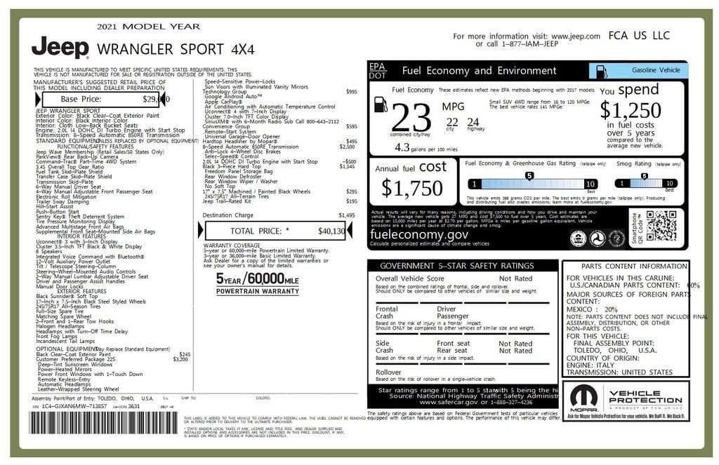 Fuel economy ratings and driving range figures are based on EPA estimates for new vehicles, and actual mileage and range may vary depending on factors such as driving conditions, vehicle maintenance, fuel quality, driving habits, and modifications. For used vehicles, the EPA estimates were generated when the vehicle was new, and actual fuel economy may differ more significantly due to factors like age, maintenance history, and vehicle condition. Therefore, EPA estimates should be used as a general guide for comparison purposes only and not as a guarantee of actual fuel economy or driving range, especially when considering used vehicles.