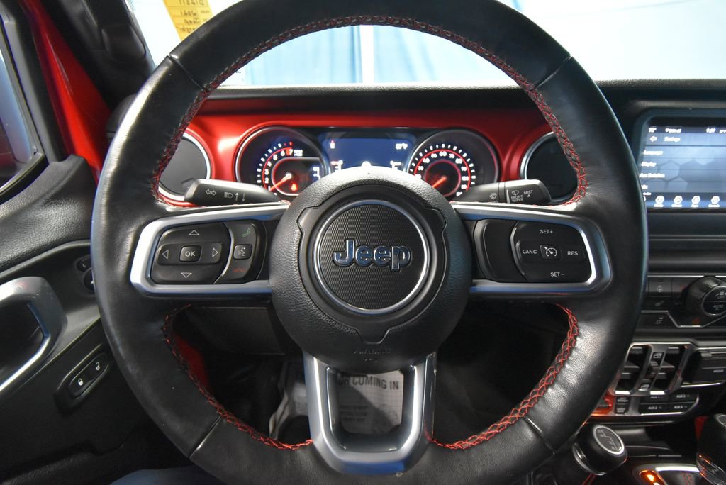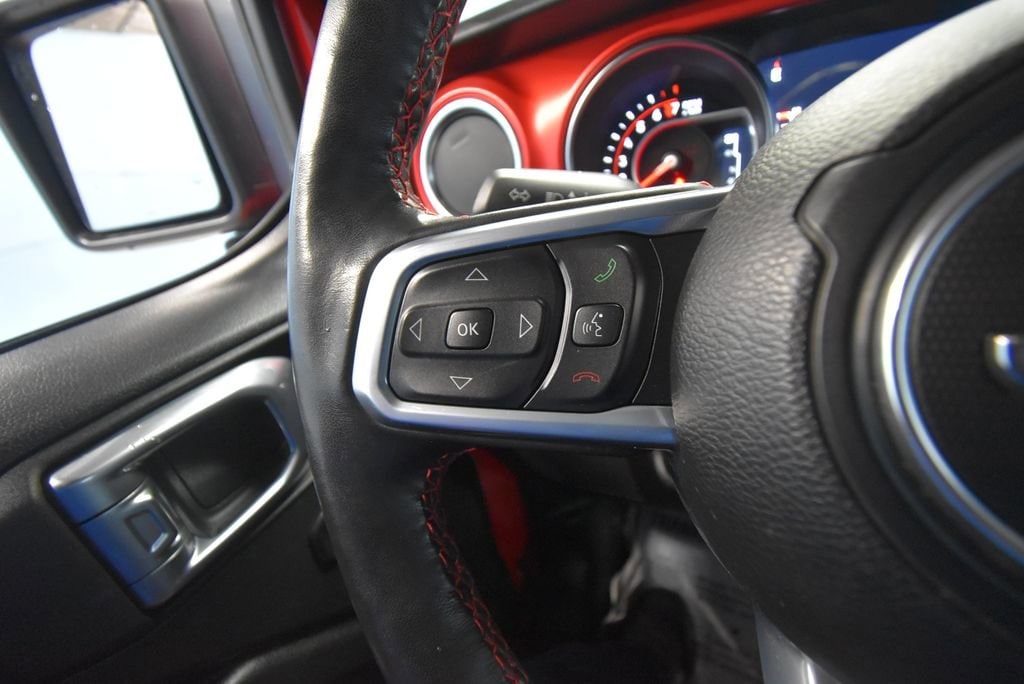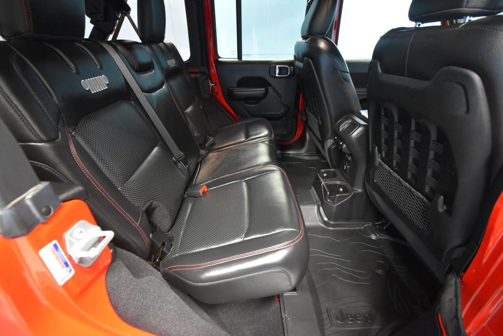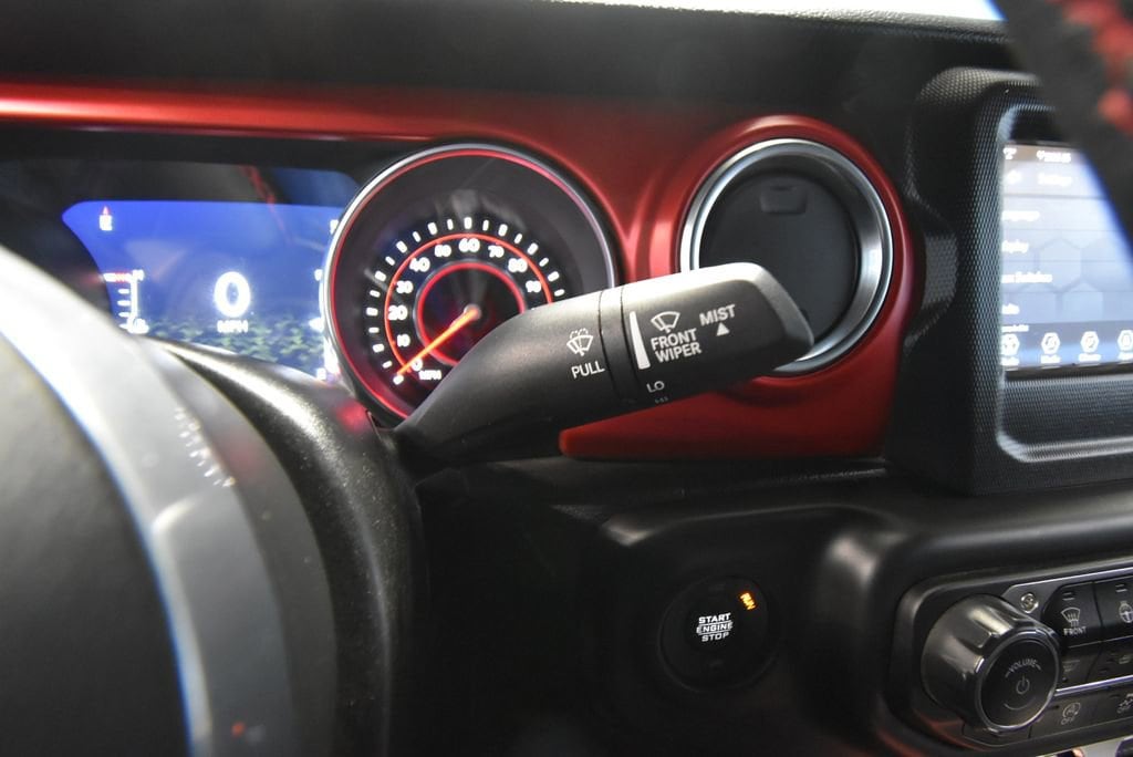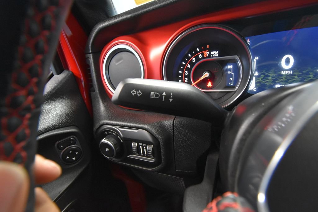 • TRAILER TOW & HD ELECTRICAL GROUP -inc: Class II Receiver Hitch 700 Amp Maintenance Free Battery 7 & 4 Pin Wiring Harness 240 Amp Alternator Auxiliary Switches,MOPAR SATIN BLACK GRILLE,LED LIGHTING GROUP -inc: Daytime Running Lamps LED Accents Front LED Fog Lamps LED Premium Reflector Headlamps LED Taillamps,BLACK PREMIUM CLOTH LOW-BACK BUCKET SEATS,TRANSMISSION: 8-SPEED AUTOMATIC (850RE),PERFORMANCE SUSPENSION (STD),MOPAR BLACK PERFORATED LEATHER,COLD WEATHER GROUP -inc: Heated Steering Wheel Heated Front Seats,MOPAR ALL-WEATHER FLOOR MATS,GVWR: 5 800 LBS (STD),QUICK ORDER PACKAGE 25R -inc: Engine: 3.6L V6 24V VVT eTorque UPG I Transmission: 8-Speed Automatic (850RE),WHEELS: 17 X 7.5 MACHINED W/BLACK POCKETS (STD),FIRECRACKER RED CLEARCOAT,REMOTE START SYSTEM,4.10 REAR AXLE RATIO (STD),ENGINE: 3.6L V6 24V VVT ETORQUE UPG I -inc: 600 Amp Maintenance Free Battery 48V Belt Starter Generator Delete Alternator Engine Oil Cooler,TIRES: LT285/70R17C BSW M/T,PREMIUM BLACK SUNRIDER SOFT TOP,ALPINE PREMIUM AUDIO SYSTEM,Four Wheel Drive,Locking/Limited Slip Differential,Locking/Limited Slip Differential,Power Steering,ABS,4-Wheel Disc Brakes,Brake Assist,Locking/Limited Slip Differential,Brake Actuated Limited Slip Differential,Aluminum Wheels,Tires - Front All-Terrain,Tires - Rear All-Terrain,Conventional Spare Tire,Tow Hooks,Tow Hooks,Heated Mirrors,Power Mirror(s),Privacy Glass,Intermittent Wipers,Variable Speed Intermittent Wipers,Rollover Protection Bars,Convertible Soft Top,Power Door Locks,Daytime Running Lights,Automatic Headlights,Fog Lamps,AM/FM Stereo,Satellite Radio,Bluetooth Connection,Requires Subscription,MP3 Capability,Steering Wheel Audio Controls,Auxiliary Audio Input,Bluetooth Connection,Driver Adjustable Lumbar,Driver Adjustable Lumbar,Pass-Through Rear Seat,Rear Bench Seat,Adjustable Steering Wheel,Trip Computer,Power Windows,Leather Steering Wheel,Keyless Start,Keyless Entry,Power Door Locks,Universal Garage Door Opener,Cruise Control,Climate Control,Multi-Zone A/C,A/C,Bucket Seats,Driver Vanity Mirror,Passenger Vanity Mirror,Driver Illuminated Vanity Mirror,Passenger Illuminated Visor Mirror,Floor Mats,Smart Device Integration,Power Windows,Power Door Locks,Trip Computer,Security System,Immobilizer,Traction Control,Stability Control,Traction Control,Front Side Air Bag,Tire Pressure Monitor,Driver Air Bag,Passenger Air Bag,Passenger Air Bag Sensor,Child Safety Locks,Back-Up Camera