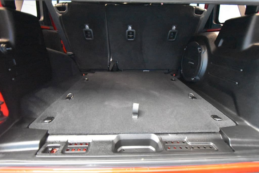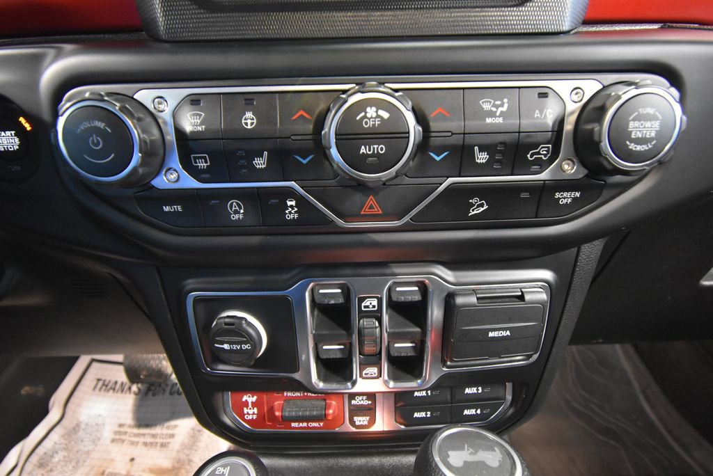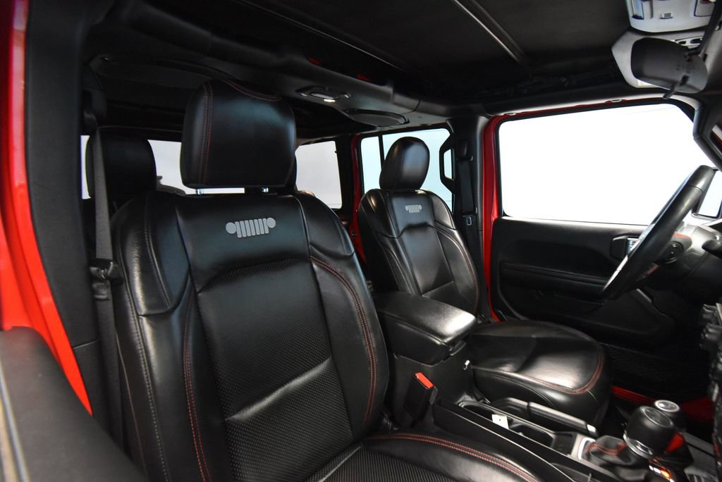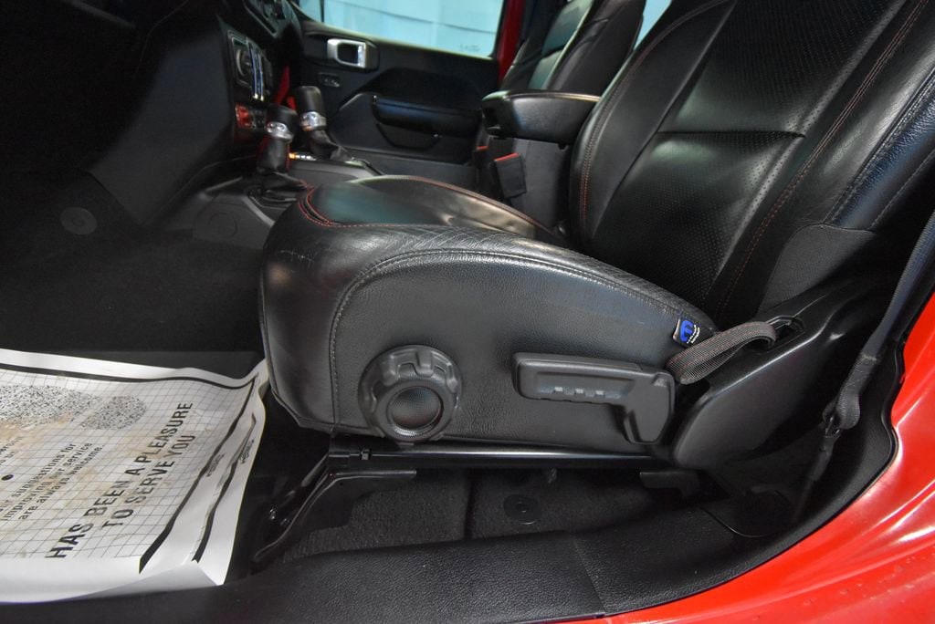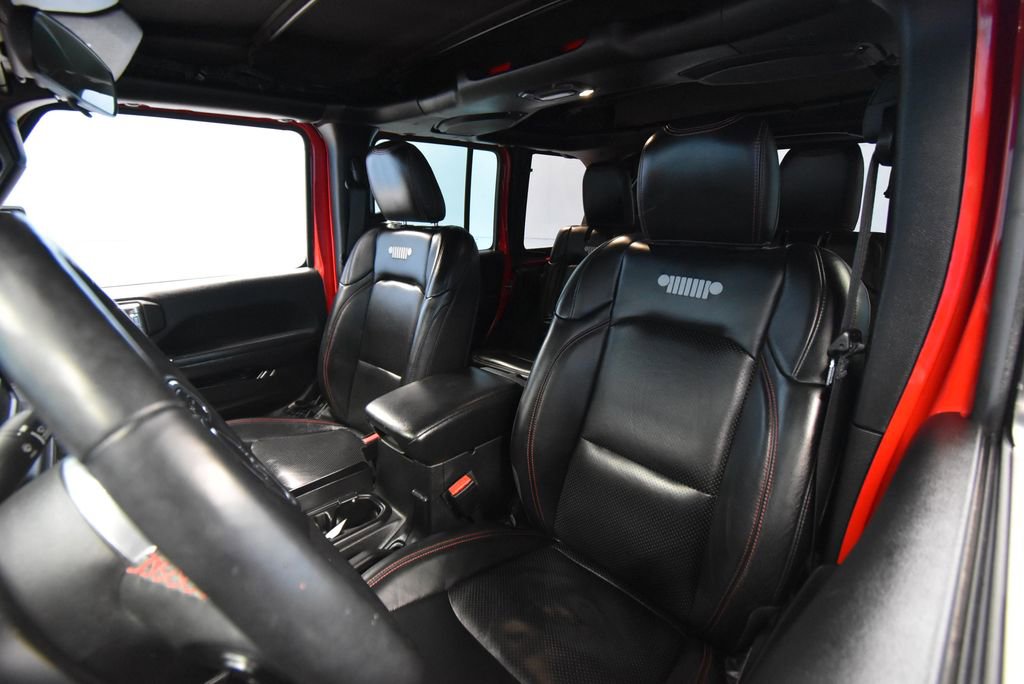 • TRAILER TOW & HD ELECTRICAL GROUP -inc: Class II Receiver Hitch 700 Amp Maintenance Free Battery 7 & 4 Pin Wiring Harness 240 Amp Alternator Auxiliary Switches,MOPAR SATIN BLACK GRILLE,LED LIGHTING GROUP -inc: Daytime Running Lamps LED Accents Front LED Fog Lamps LED Premium Reflector Headlamps LED Taillamps,BLACK PREMIUM CLOTH LOW-BACK BUCKET SEATS,TRANSMISSION: 8-SPEED AUTOMATIC (850RE),PERFORMANCE SUSPENSION (STD),MOPAR BLACK PERFORATED LEATHER,COLD WEATHER GROUP -inc: Heated Steering Wheel Heated Front Seats,MOPAR ALL-WEATHER FLOOR MATS,GVWR: 5 800 LBS (STD),QUICK ORDER PACKAGE 25R -inc: Engine: 3.6L V6 24V VVT eTorque UPG I Transmission: 8-Speed Automatic (850RE),WHEELS: 17 X 7.5 MACHINED W/BLACK POCKETS (STD),FIRECRACKER RED CLEARCOAT,REMOTE START SYSTEM,4.10 REAR AXLE RATIO (STD),ENGINE: 3.6L V6 24V VVT ETORQUE UPG I -inc: 600 Amp Maintenance Free Battery 48V Belt Starter Generator Delete Alternator Engine Oil Cooler,TIRES: LT285/70R17C BSW M/T,PREMIUM BLACK SUNRIDER SOFT TOP,ALPINE PREMIUM AUDIO SYSTEM,Four Wheel Drive,Locking/Limited Slip Differential,Locking/Limited Slip Differential,Power Steering,ABS,4-Wheel Disc Brakes,Brake Assist,Locking/Limited Slip Differential,Brake Actuated Limited Slip Differential,Aluminum Wheels,Tires - Front All-Terrain,Tires - Rear All-Terrain,Conventional Spare Tire,Tow Hooks,Tow Hooks,Heated Mirrors,Power Mirror(s),Privacy Glass,Intermittent Wipers,Variable Speed Intermittent Wipers,Rollover Protection Bars,Convertible Soft Top,Power Door Locks,Daytime Running Lights,Automatic Headlights,Fog Lamps,AM/FM Stereo,Satellite Radio,Bluetooth Connection,Requires Subscription,MP3 Capability,Steering Wheel Audio Controls,Auxiliary Audio Input,Bluetooth Connection,Driver Adjustable Lumbar,Driver Adjustable Lumbar,Pass-Through Rear Seat,Rear Bench Seat,Adjustable Steering Wheel,Trip Computer,Power Windows,Leather Steering Wheel,Keyless Start,Keyless Entry,Power Door Locks,Universal Garage Door Opener,Cruise Control,Climate Control,Multi-Zone A/C,A/C,Bucket Seats,Driver Vanity Mirror,Passenger Vanity Mirror,Driver Illuminated Vanity Mirror,Passenger Illuminated Visor Mirror,Floor Mats,Smart Device Integration,Power Windows,Power Door Locks,Trip Computer,Security System,Immobilizer,Traction Control,Stability Control,Traction Control,Front Side Air Bag,Tire Pressure Monitor,Driver Air Bag,Passenger Air Bag,Passenger Air Bag Sensor,Child Safety Locks,Back-Up Camera
