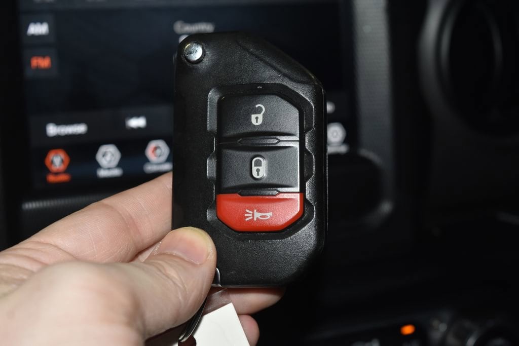 • BLACK CLOTH LOW-BACK BUCKET SEATS,TRANSMISSION: 8-SPEED AUTOMATIC (850RE) -inc: Transmission Skid Plate Selec-Speed Control,ENGINE: 3.6L V6 24V VVT UPG I W/ESS (STD),BLACK 3-PIECE HARD TOP -inc: Freedom Panel Storage Bag Rear Window Defroster Rear Sliding Window,BLACK CLEARCOAT,WHEELS: 17 X 7.5 TECH SILVER ALUMINUM,GVWR: 5 800 LBS,3.73 REAR AXLE RATIO (STD),QUICK ORDER PACKAGE 24S SPORT S -inc: Engine: 3.6L V6 24V VVT UPG I w/ESS Transmission: 8-Speed Automatic (850RE) Speed Sensitive Power Locks Automatic Headlamps Deep Tint Sunscreen Windows Front 1-Touch Down Power Windows Sport S Power Heated Mirrors Premium Wrapped Steering Wheel Security Alarm Power Tailgate Lock Remote Keyless Entry Sun Visors w/Illuminated Vanity Mirrors,TIRES: 245/75R17 H/T (STD),FRONT LICENSE PLATE BRACKET,Four Wheel Drive,Power Steering,ABS,4-Wheel Disc Brakes,Brake Assist,Brake Actuated Limited Slip Differential,Aluminum Wheels,Conventional Spare Tire,Tow Hooks,Tow Hooks,Intermittent Wipers,Variable Speed Intermittent Wipers,Rollover Protection Bars,Convertible Soft Top,Fog Lamps,AM/FM Stereo,Bluetooth ® Connection,MP3 Capability,Steering Wheel Audio Controls,Auxiliary Audio Input,Bluetooth ® Connection,Driver Adjustable Lumbar,Driver Adjustable Lumbar,Pass-Through Rear Seat,Rear Bench Seat,Adjustable Steering Wheel,Trip Computer,Power Windows,Keyless Start,Cruise Control,A/C,Cloth Seats,Bucket Seats,Floor Mats,Smart Device Integration,WiFi Hotspot,Smart Device Integration,Smart Device Integration,Power Windows,Trip Computer,Immobilizer,Traction Control,Stability Control,Traction Control,Front Side Air Bag,Telematics,Requires Subscription,Tire Pressure Monitor,Driver Air Bag,Passenger Air Bag,Passenger Air Bag Sensor,Child Safety Locks,Back-Up Camera