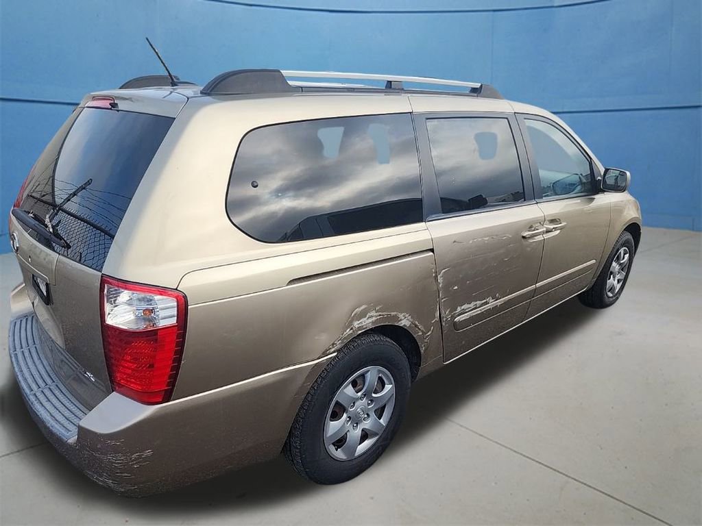 2009 Kia Sedona LX **Prices listed do not include a $250 documentation fee, applicable tax, title, tags, license, or $195 service and preparation. All pricing, vehicle information, and features (such as accessories and color) are believed to be accurate, but we do not warrant or guarantee such accuracy. The prices shown above may vary from region to region, and incentives are subject to change. Some offers listed may not be available to all customers. All online sale commitments are subject to confirmation of continued availability of vehicle. Once availability is confirmed, online sale agreement becomes binding upon the parties. If any information found on the website is thought to be erroneous, please verify information with a customer service representative. See dealer for full details. 16 x 6.5J Steel Wheels w/Covers, 3.33 Axle Ratio, 3rd row seats: split-bench, 4-Wheel Disc Brakes, 7-Passenger Seating, 8 Speakers, ABS brakes, Air Conditioning, AM/FM radio: SIRIUS, AM/FM/CD/MP3/Sat Audio System w/8 Speakers, Anti-whiplash front head restraints, Bodyside moldings, Brake assist, Bumpers: body-color, CD player, Double Raschel Cloth Seat Trim, Driver door bin, Driver vanity mirror, Driver's Seat Mounted Armrest, Dual front impact airbags, Dual front side impact airbags, Electronic Stability Control, Four wheel independent suspension, Front anti-roll bar, Front Bucket Seats, Front reading lights, Illuminated entry, Low tire pressure warning, Occupant sensing airbag, Overhead airbag, Overhead console, Panic alarm, Passenger door bin, Passenger seat mounted armrest, Passenger vanity mirror, Power door mirrors, Power moonroof, Power steering, Power windows, Rear air conditioning, Rear anti-roll bar, Rear reading lights, Rear window defroster, Rear window wiper, Reclining 3rd row seat, Remote keyless entry, Roof rack: rails only, Speed control, Speed-sensing steering, Split folding rear seat, Tachometer, Tilt steering wheel, Traction control, Variably intermittent wipers. 4D Passenger Van LX 5-Speed Automatic with Sportronic 3.8L V6 DOHC 24V FWD Sunset Gold