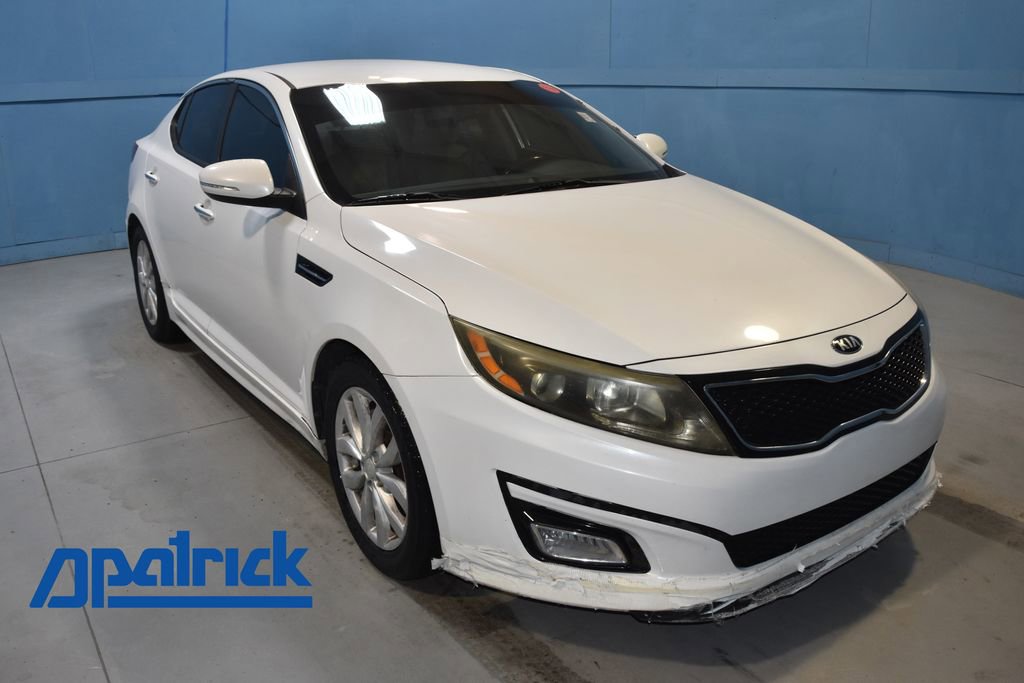 2015 Kia Optima EX VEHICLE SOLD AS-IS. We want you to shop confidently for your next used car at D-Patrick Nissan. This vehicle’s low price is reflective of its age, condition, and mileage and we do not warrant its mechanical or overall condition. This vehicle is provided with a CarFax vehicle history report. This is an AS-IS vehicle and is not available for additional service plans. *Prices listed do not include a $250 documentation fee, applicable tax, title, tags, license, or $195 service and preparation. All pricing, vehicle information, and features (such as accessories and color) are believed to be accurate, but we do not warrant or guarantee such accuracy. The prices shown above may vary from region to region, and incentives are subject to change. Some offers listed may not be available to all customers. All online sale commitments are subject to confirmation of continued availability of vehicle. Once availability is confirmed, online sale agreement becomes binding upon the parties. If any information found on the website is thought to be erroneous, please verify information with a customer service representative. See dealer for full details. Gray Leather, 17 Alloy Wheels, 4-Wheel Disc Brakes, 6 Speakers, ABS brakes, Air Conditioning, Alloy wheels, AM/FM radio: SiriusXM, AM/FM/CD/MP3 Radio, Auto-dimming Rear-View mirror, Automatic temperature control, Brake assist, Bumpers: body-color, Cargo Net, CD player, Compass, Delay-off headlights, Driver door bin, Driver vanity mirror, Dual front impact airbags, Dual front side impact airbags, Electronic Stability Control, Four wheel independent suspension, Front anti-roll bar, Front Bucket Seats, Front Center Armrest, Front dual zone A/C, Front fog lights, Front reading lights, Fully automatic headlights, Heated door mirrors, Illuminated entry, Leather Seat Trim, Low tire pressure warning, Occupant sensing airbag, Outside temperature display, Overhead airbag, Overhead console, Panic alarm, Passenger door bin, Passenger vanity mirror, Power door mirrors, Power driver seat, Power steering, Power windows, Rear anti-roll bar, Rear Bumper Applique, Rear reading lights, Rear seat center armrest, Rear window defroster, Remote keyless entry, Security system, Speed control, Speed-sensing steering, Split folding rear seat, Steering wheel mounted audio controls, Tachometer, Telescoping steering wheel, Tilt steering wheel, Traction control, Trip computer, Turn signal indicator mirrors, Variably intermittent wipers, Wheel Locks, Gray Leather. Clean CARFAX. 4D Sedan EX 6-Speed Automatic with Sportmatic 2.4L I4 DGI DOHC FWD Snow White Pearl CALL TODAY 812-473-6500 and shop online at www.dpatricknissan.com.