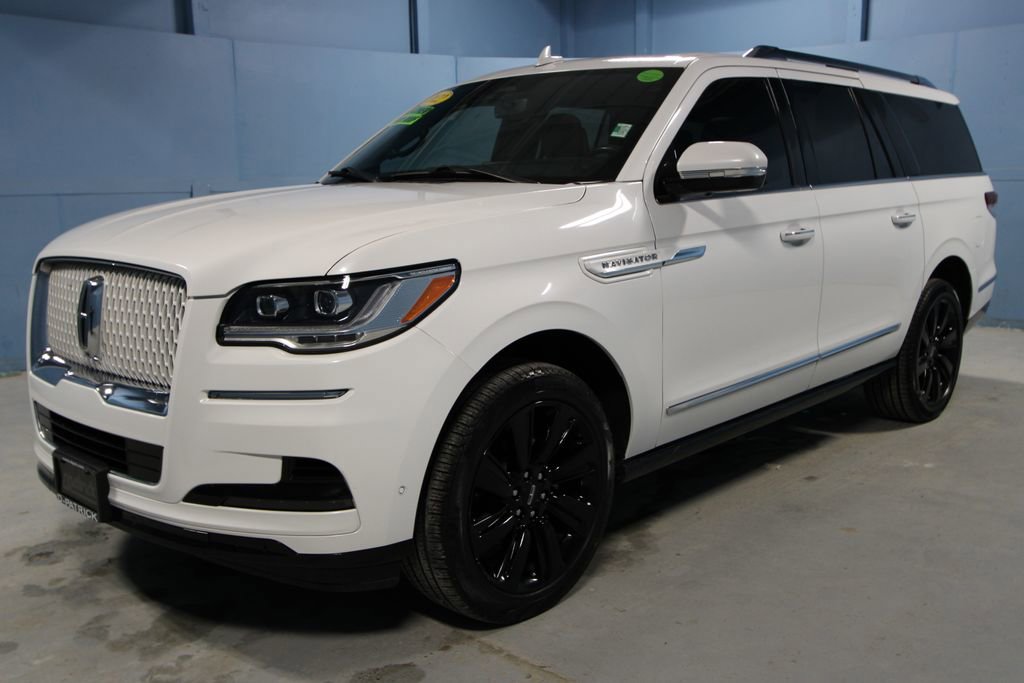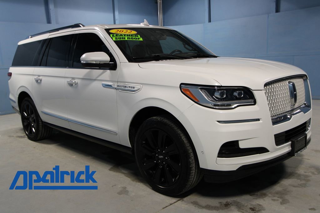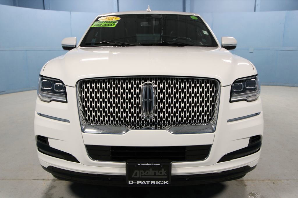 2022 Lincoln Navigator L L Reserve We want you to shop confidently for your next used car at The BIG Ford Store, D-Patrick Ford. We are located on Highway 41 and Walnut in Evansville, right next to the Lloyd Expressway. Buy this used vehicle 100% online or in-store. This pre-owned vehicle was put through an extensive inspection before hitting our lot. Because of this, we are able to offer a 3-month/3,000-mile comprehensive limited warranty. You also get our Love It or Return It 5-day, 300-mile Exchange Policy. See our website for more details on both. We also offer extended service plans, vehicle protection plans, and offer a CarFax vehicle history report. *Prices listed do not include a $250 documentation fee, applicable tax, title, tags, license, or $195 service and preparation. All pricing, vehicle information, and features (such as accessories and color) are believed to be accurate, but we do not warrant or guarantee such accuracy. The prices shown above may vary from region to region, and incentives are subject to change. Some offers listed may not be available to all customers. All online sale commitments are subject to confirmation of continued availability of vehicle. Once availability is confirmed, online sale agreement becomes binding upon the parties. If any information found on the website is thought to be erroneous, please verify information with a customer service representative. See dealer for full details. Looking to sell your current vehicle? We buy cars for cash. Every test drive at D-Patrick Ford in Evansville earns $10 to a local charity. Schedule your test drive today! 14 Speakers, 3.73 Axle Ratio, 3rd row seats: split-bench, 4-Wheel Disc Brakes, ABS brakes, Active Park Assist 2.0 Prep Kit, Adaptive suspension, Adjustable pedals, Air Conditioning, Alloy wheels, AM/FM radio: SiriusXM with 360L, Audio memory, Auto High-beam Headlights, Auto Start-Stop Technology, Auto tilt-away steering wheel, Auto-dimming door mirrors, Auto-dimming Rear-View mirror, Auto-leveling suspension, Automatic temperature control, Body-Color Exterior Mirror Finish, Bodyside moldings, Brake assist, Bumpers: body-color, Compass, Delay-off headlights, Driver door bin, Driver vanity mirror, Driver's Seat Mounted Armrest, Dual front impact airbags, Dual front side impact airbags, Electronic Stability Control, Emergency communication system: 911 Assist, Equipment Group 201A Reserve I, Exterior Parking Camera Rear, Four wheel independent suspension, Front anti-roll bar, Front Bucket Seats, Front dual zone A/C, Front fog lights, Front reading lights, Fully automatic headlights, Garage door transmitter, Genuine wood dashboard insert, Genuine wood door panel insert, Hands-Free Liftgate Delete, Head restraints memory, Heads-Up Display, Heated door mirrors, Heated front seats, Heated rear seats, Heated steering wheel, HVAC memory, Illuminated 1st & 2nd Row Seat Belts, Illuminated entry, Leather steering wheel, Lincoln Lit Star in Grille, Low tire pressure warning, Luxury Package, Memory seat, Monochromatic Lincoln Badge, Monochromatic Lincoln Grille, Monochromatic Package, Navigation system: Connected Navigation (3-year trial), Occupant sensing airbag, Outside temperature display, Overhead airbag, Overhead console, Panic alarm, Passenger door bin, Passenger seat mounted armrest, Passenger vanity mirror, Pedal memory, Perfect Position Seats (30-Way) w/Active Motion, Power adjustable rear head restraints, Power door mirrors, Power driver seat, Power Liftgate, Power moonroof: Panoramic Vista Roof, Power passenger seat, Power steering, Power windows, Prem Lthr Auto Htd/Ventiltd Perfect Position Seats, Radio data system, Radio: Revel AM/FM/HD/MP3 Audio System, Rain sensing wipers, Rear air conditioning, Rear anti-roll bar, Rear audio controls, Rear reading lights, Rear window defroster, Rear window wiper, Reclining 3rd row seat, Remote keyless entry, Revel Ultima 3D Audio System w/28 Speakers, Roof rack: rails only, Security system, SiriusXM w/360L,