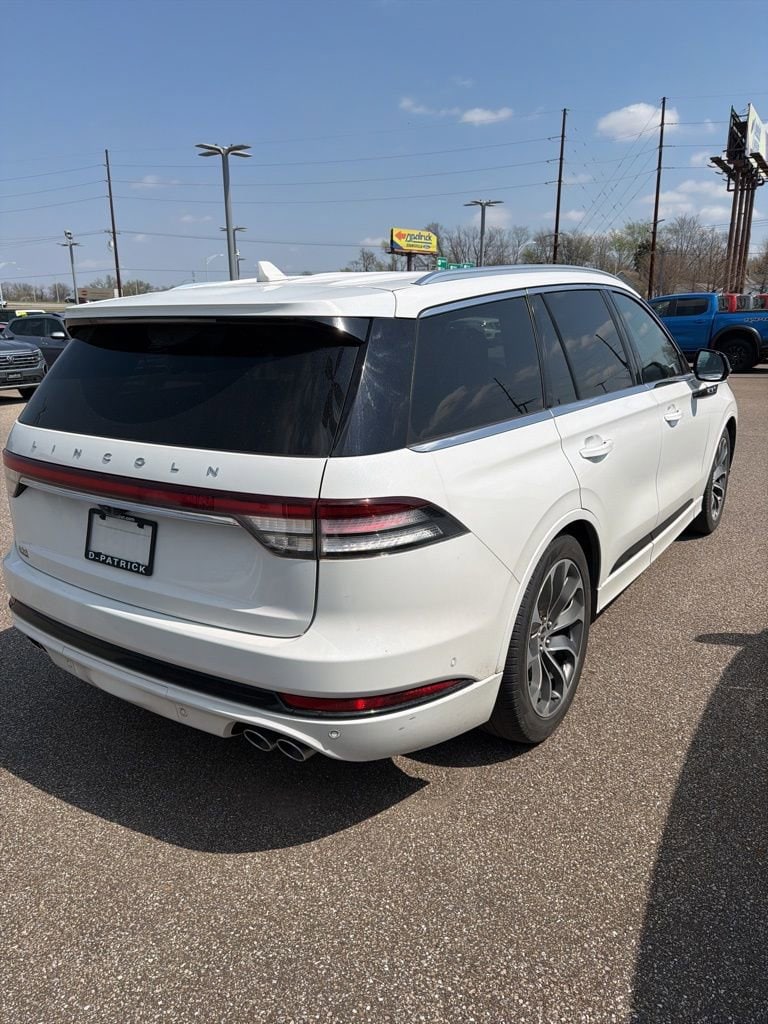 2023 Lincoln Aviator Plug-In Hybrid Grand Touring We want you to shop confidently for your next used car at The BIG Ford Store, D-Patrick Ford. We are located on Highway 41 and Walnut in Evansville, right next to the Lloyd Expressway. Buy this used vehicle 100% online or in-store. This pre-owned vehicle was put through an extensive inspection before hitting our lot. Because of this, we are able to offer a 3-month/3,000-mile comprehensive limited warranty. You also get our Love It or Return It 5-day, 300-mile Exchange Policy. See our website for more details on both. We also offer extended service plans, vehicle protection plans, and offer a CarFax vehicle history report. *Prices listed do not include a $250 documentation fee, applicable tax, title, tags, license, or $195 service and preparation. All pricing, vehicle information, and features (such as accessories and color) are believed to be accurate, but we do not warrant or guarantee such accuracy. The prices shown above may vary from region to region, and incentives are subject to change. Some offers listed may not be available to all customers. All online sale commitments are subject to confirmation of continued availability of vehicle. Once availability is confirmed, online sale agreement becomes binding upon the parties. If any information found on the website is thought to be erroneous, please verify information with a customer service representative. See dealer for full details. Looking to sell your current vehicle? We buy cars for cash. Every test drive at D-Patrick Ford in Evansville earns $10 to a local charity. Schedule your test drive today! 3.0L V6 Plug-In Hybrid Twin Turbocharged, 14 Speakers, 3.31 Axle Ratio, 3rd row seats: split-bench, 4-Pin & 7-Pin Connectors, 4-Wheel Disc Brakes, ABS brakes, Active Park Assist 2.0, Adaptive Pixel LED Headlamps, Adaptive suspension, Air Conditioning, Air Glide Suspension w/Dynamic Lower Entry, Alloy wheels, AM/FM radio: SiriusXM, Audio memory, Auto Air Refresh, Auto Heated/Ventilated Driver & Passenger Seats, Auto High-beam Headlights, Auto-dimming door mirrors, Auto-dimming Rear-View mirror, Automatic temperature control, Blind Spot Information System, Brake assist, Bumpers: body-color, Class IV Hitch & Wiring, Class IV Trailer Tow Package, Compass, Delay-off headlights, Driver door bin, Driver vanity mirror, Dual front impact airbags, Dual front side impact airbags, Dynamic Handling Package, Electronic Stability Control, Elements Package Plus, Emergency communication system, Enhanced Security System Lite, Equipment Group 301A, Evasive Steering Assist, Four wheel independent suspension, Front anti-roll bar, Front Bucket Seats, Front Center Armrest, Front dual zone A/C, Front reading lights, Fully automatic headlights, Garage door transmitter, Hands-Free Liftgate Delete, Head-Up Display, Heated door mirrors, Heated front seats, Heated Steering Wheel, Heated VisioBlade Wipers, Heated/Ventilated 2nd Row Outboard Seats, HVAC memory, Illuminated entry, Illuminated Lincoln Star in Grille, Illumination Package, Intelligent Adaptive Cruise Control, Knee airbag, Leather steering wheel, LED Fog Lamps, Lincoln Co-Pilot360 1.5 Plus, Low tire pressure warning, Memory seat, Navigation System, Occupant sensing airbag, Outside temperature display, Overhead airbag, Overhead console, Panic alarm, Passenger door bin, Passenger vanity mirror, Phone As A Key, Power door mirrors, Power driver seat, Power Liftgate, Power moonroof: Panoramic Vista Roof, Power passenger seat, Power steering, Power windows, Premium Lthr Heated/Ventilated Fnt Captain's Chairs, Radio data system, Radio: Revel AM/FM Audio System w/14 Speakers, Rain sensing wipers, Rear air conditioning, Rear anti-roll bar, Rear audio controls, Rear dual zone A/C, Rear reading lights, Rear window defroster, Rear window wiper, Remote keyless entry, Reverse Brake Assist, Security system, SiriusXM Radio, Smart Trailer Tow, Speed control, Speed-Sensitive Wipers, Split folding rear seat, Spoi