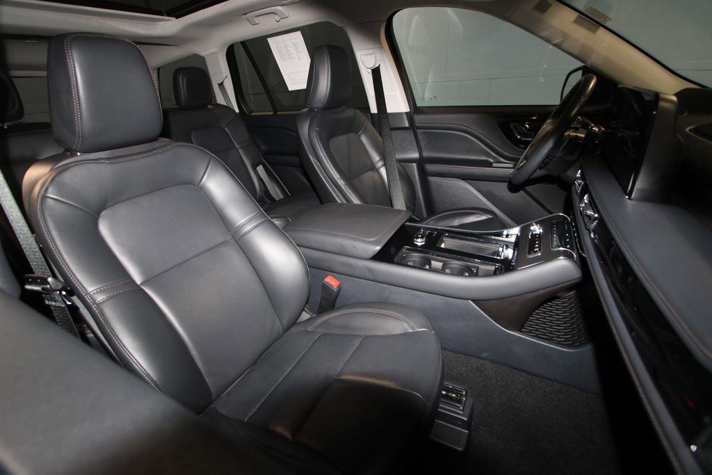 2025 Lincoln Aviator Premiere Recent Arrival! We want you to shop confidently for your next used car at The BIG Ford Store, D-Patrick Ford. We are located on Highway 41 and Walnut in Evansville, right next to the Lloyd Expressway. Buy this used vehicle 100% online or in-store. This pre-owned vehicle was put through an extensive inspection before hitting our lot. Because of this, we are able to offer a 3-month/3,000-mile comprehensive limited warranty. You also get our Love It or Return It 5-day, 300-mile Exchange Policy. See our website for more details on both. We also offer extended service plans, vehicle protection plans, and offer a CarFax vehicle history report. *Prices listed do not include a $250 documentation fee, applicable tax, title, tags, license, or $195 service and preparation. All pricing, vehicle information, and features (such as accessories and color) are believed to be accurate, but we do not warrant or guarantee such accuracy. The prices shown above may vary from region to region, and incentives are subject to change. Some offers listed may not be available to all customers. All online sale commitments are subject to confirmation of continued availability of vehicle. Once availability is confirmed, online sale agreement becomes binding upon the parties. If any information found on the website is thought to be erroneous, please verify information with a customer service representative. See dealer for full details. Looking to sell your current vehicle? We buy cars for cash. Every test drive at D-Patrick Ford in Evansville earns $10 to a local charity. Schedule your test drive today! 10 Speakers, 3rd row seats: split-bench, 4-Wheel Disc Brakes, ABS brakes, Adaptive suspension, Advanced Heads-Up Display, Air Conditioning, All-Weather 1st & 2nd Row Floor Liners (16A), Alloy wheels, AM/FM radio: SiriusXM, Apple CarPlay/Android Auto, Audio memory, Auto Air Refresh, Auto High-beam Headlights, Auto-dimming door mirrors, Auto-dimming Rear-View mirror, Automatic temperature control, Black Exterior Elements, Body-Color Exterior Elements, Brake assist, Bumpers: body-color, Compass, Delay-off headlights, Driver door bin, Driver vanity mirror, Dual front impact airbags, Dual front side impact airbags, Electronic Stability Control, Emergency communication system: 911 Assist, Equipment Group 101A, Four wheel independent suspension, Front anti-roll bar, Front Bucket Seats, Front Center Armrest, Front dual zone A/C, Front reading lights, Fully automatic headlights, Garage door transmitter, Heated 2nd Row Seats, Heated door mirrors, Heated front seats, Heated steering wheel, HVAC memory, Illuminated entry, Jet Appearance Package, Knee airbag, Leather steering wheel, Lincoln BlueCruise Equipped (4-Years Included), Lincoln Digital Experience, Lincoln Soft Touch Heated/Ventilated Comfort Seats, Low tire pressure warning, Memory seat, Navigation system: Connected Navigation (1-year trial), Occupant sensing airbag, Outside temperature display, Overhead airbag, Overhead console, Panic alarm, Passenger door bin, Passenger vanity mirror, Power door mirrors, Power driver seat, Power Liftgate, Power moonroof: Panoramic Vista Roof, Power passenger seat, Power steering, Power windows, Radio data system, Radio: Lincoln Premium AM/FM/HD Audio System, Radio: Revel Audio System w/14 Speakers, Rain sensing wipers, Rear air conditioning, Rear anti-roll bar, Rear audio controls, Rear reading lights, Rear window defroster, Rear window wiper, Remote keyless entry, Security system, SiriusXM, Speed control, Speed-Sensitive Wipers, Split folding rear seat, Spoiler, Steering wheel memory, Steering wheel mounted A/C controls, Steering wheel mounted audio controls, Tachometer, Telescoping steering wheel, Tilt steering wheel, Traction control, Trip computer, Turn signal indicator mirrors, Variably intermittent wipers, Ventilated front seats, Wheels: 20 Magnetic Bright-Machined Aluminum, Wheels: 21 Bright-Machined Aluminum, Wireless Charging. CARFAX One