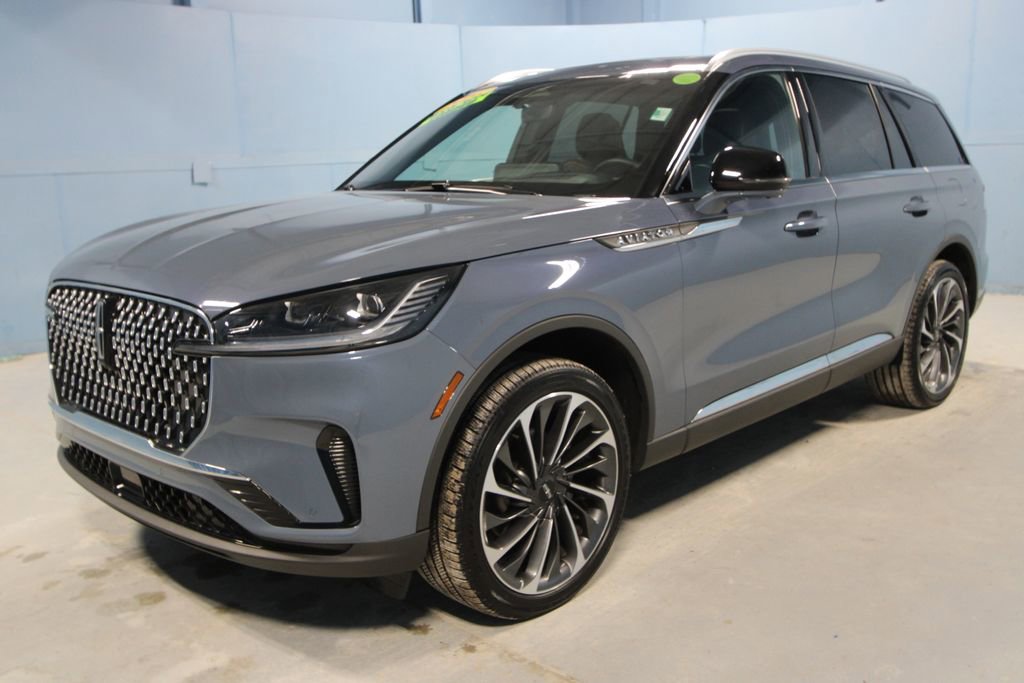 2025 Lincoln Aviator Reserve We want you to shop confidently for your next used car at The BIG Ford Store, D-Patrick Ford. We are located on Highway 41 and Walnut in Evansville, right next to the Lloyd Expressway. Buy this used vehicle 100% online or in-store. This pre-owned vehicle was put through an extensive inspection before hitting our lot. Because of this, we are able to offer a 3-month/3,000-mile comprehensive limited warranty. You also get our Love It or Return It 5-day, 300-mile Exchange Policy. See our website for more details on both. We also offer extended service plans, vehicle protection plans, and offer a CarFax vehicle history report. *Prices listed do not include a $250 documentation fee, applicable tax, title, tags, license, or $195 service and preparation. All pricing, vehicle information, and features (such as accessories and color) are believed to be accurate, but we do not warrant or guarantee such accuracy. The prices shown above may vary from region to region, and incentives are subject to change. Some offers listed may not be available to all customers. All online sale commitments are subject to confirmation of continued availability of vehicle. Once availability is confirmed, online sale agreement becomes binding upon the parties. If any information found on the website is thought to be erroneous, please verify information with a customer service representative. See dealer for full details. Looking to sell your current vehicle? We buy cars for cash. Every test drive at D-Patrick Ford in Evansville earns $10 to a local charity. Schedule your test drive today! 14 Speakers, 2nd Row Bench Seat, 30-Way Perfect Position Seats w/Active Motion, 3rd row seats: split-bench, 4-Wheel Disc Brakes, 40/Mini Console/40 Dual Captain's Chairs, ABS brakes, Adaptive Dynamic Bending Lighting, Adaptive Pixel LED Headlamps, Adaptive suspension, Advanced Heads-Up Display, Air Conditioning, All-Weather 1st & 2nd Row Floor Liners (16A), Alloy wheels, AM/FM radio: SiriusXM, Apple CarPlay/Android Auto, Audio memory, Auto Air Refresh, Auto High-beam Headlights, Auto-dimming door mirrors, Auto-dimming Rear-View mirror, Automatic temperature control, Brake assist, Bumpers: body-color, Compass, Delay-off headlights, Driver door bin, Driver vanity mirror, Dual front impact airbags, Dual front side impact airbags, Electronic Stability Control, Emergency communication system: 911 Assist, Equipment Group 201A, Four wheel independent suspension, Front anti-roll bar, Front Bucket Seats, Front Center Armrest, Front dual zone A/C, Front reading lights, Fully automatic headlights, Garage door transmitter, Genuine wood console insert, Genuine wood dashboard insert, Heads-Up Display, Heated & Ventilated Rear Seats, Heated door mirrors, Heated front seats, Heated steering wheel, HVAC memory, Illuminated entry, Illuminated Lincoln Star in Grille, Illumination Package, Knee airbag, Leather steering wheel, Lincoln BlueCruise Equipped (4-Years Included), Lincoln Digital Experience, Lincoln Dynamic Signature Lighting, Low tire pressure warning, Luxury Package, Memory seat, Navigation system: Connected Navigation (1-year trial), Occupant sensing airbag, Outside temperature display, Overhead airbag, Overhead console, Panic alarm, Passenger door bin, Passenger vanity mirror, Power door mirrors, Power driver seat, Power Liftgate, Power moonroof: Panoramic Vista Roof, Power passenger seat, Power steering, Power windows, Premium Lthr Heated/Ventilated Fnt Captain's Chairs, Radio data system, Radio: Revel Audio System w/14 Speakers, Radio: Revel Ultima 3D Audio System w/28 Speakers, Rain sensing wipers, Rear air conditioning, Rear anti-roll bar, Rear audio controls, Rear dual zone A/C, Rear reading lights, Rear window defroster, Rear window wiper, Remote keyless entry, Security system, SiriusXM, Speed control, Speed Dependent Lighting, Speed-Sensitive Wipers, Split folding rear seat, Spoiler, Steering wheel memory, Steering wheel mounted A/C controls, Stee