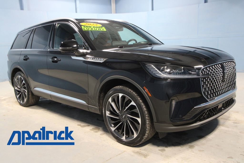 2025 Lincoln Aviator Reserve We want you to shop confidently for your next used car at The BIG Ford Store, D-Patrick Ford. We are located on Highway 41 and Walnut in Evansville, right next to the Lloyd Expressway. Buy this used vehicle 100% online or in-store. This pre-owned vehicle was put through an extensive inspection before hitting our lot. Because of this, we are able to offer a 3-month/3,000-mile comprehensive limited warranty. You also get our Love It or Return It 5-day, 300-mile Exchange Policy. See our website for more details on both. We also offer extended service plans, vehicle protection plans, and offer a CarFax vehicle history report. *Prices listed do not include a $250 documentation fee, applicable tax, title, tags, license, or $195 service and preparation. All pricing, vehicle information, and features (such as accessories and color) are believed to be accurate, but we do not warrant or guarantee such accuracy. The prices shown above may vary from region to region, and incentives are subject to change. Some offers listed may not be available to all customers. All online sale commitments are subject to confirmation of continued availability of vehicle. Once availability is confirmed, online sale agreement becomes binding upon the parties. If any information found on the website is thought to be erroneous, please verify information with a customer service representative. See dealer for full details. Looking to sell your current vehicle? We buy cars for cash. Every test drive at D-Patrick Ford in Evansville earns $10 to a local charity. Schedule your test drive today! 14 Speakers, 30-Way Perfect Position Seats w/Active Motion, 3rd row seats: split-bench, 4-Wheel Disc Brakes, 40/Mini Console/40 Dual Captain's Chairs, ABS brakes, Adaptive Dynamic Bending Lighting, Adaptive Pixel LED Headlamps, Adaptive suspension, Advanced Heads-Up Display, Air Conditioning, All-Weather 1st & 2nd Row Floor Liners (16A), Alloy wheels, AM/FM radio: SiriusXM, Apple CarPlay/Android Auto, Audio memory, Auto Air Refresh, Auto High-beam Headlights, Auto-dimming door mirrors, Auto-dimming Rear-View mirror, Automatic temperature control, Brake assist, Bumpers: body-color, Compass, Delay-off headlights, Driver door bin, Driver vanity mirror, Dual front impact airbags, Dual front side impact airbags, Electronic Stability Control, Emergency communication system: 911 Assist, Equipment Group 201A, Four wheel independent suspension, Front anti-roll bar, Front Bucket Seats, Front Center Armrest, Front dual zone A/C, Front reading lights, Fully automatic headlights, Garage door transmitter, Genuine wood console insert, Genuine wood dashboard insert, Heads-Up Display, Heated & Ventilated Rear Seats, Heated door mirrors, Heated front seats, Heated steering wheel, HVAC memory, Illuminated entry, Illuminated Lincoln Star in Grille, Illumination Package, Knee airbag, Leather steering wheel, Lincoln BlueCruise Equipped (4-Years Included), Lincoln Digital Experience, Lincoln Dynamic Signature Lighting, Low tire pressure warning, Luxury Package, Memory seat, Navigation system: Connected Navigation (1-year trial), Occupant sensing airbag, Outside temperature display, Overhead airbag, Overhead console, Panic alarm, Passenger door bin, Passenger vanity mirror, Power door mirrors, Power driver seat, Power Liftgate, Power moonroof: Panoramic Vista Roof, Power passenger seat, Power steering, Power windows, Premium Lthr Heated/Ventilated Fnt Captain's Chairs, Radio data system, Radio: Revel Audio System w/14 Speakers, Radio: Revel Ultima 3D Audio System w/28 Speakers, Rain sensing wipers, Rear air conditioning, Rear anti-roll bar, Rear audio controls, Rear dual zone A/C, Rear reading lights, Rear window defroster, Rear window wiper, Remote keyless entry, Security system, SiriusXM, Speed control, Speed Dependent Lighting, Speed-Sensitive Wipers, Split folding rear seat, Spoiler, Steering wheel memory, Steering wheel mounted A/C controls, Steering wheel mounted a