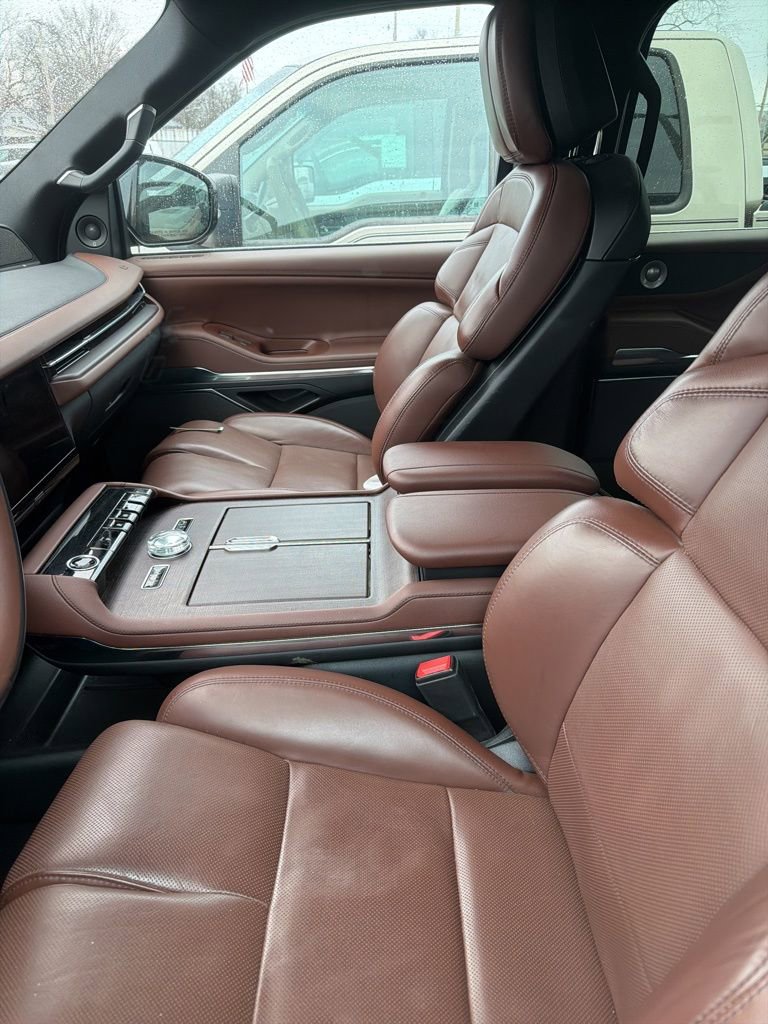 2025 Lincoln Navigator Reserve We want you to shop confidently for your next used car at The BIG Ford Store, D-Patrick Ford. We are located on Highway 41 and Walnut in Evansville, right next to the Lloyd Expressway. Buy this used vehicle 100% online or in-store. This pre-owned vehicle was put through an extensive inspection before hitting our lot. Because of this, we are able to offer a 3-month/3,000-mile comprehensive limited warranty. You also get our Love It or Return It 5-day, 300-mile Exchange Policy. See our website for more details on both. We also offer extended service plans, vehicle protection plans, and offer a CarFax vehicle history report. *Prices listed do not include a $250 documentation fee, applicable tax, title, tags, license, or $195 service and preparation. All pricing, vehicle information, and features (such as accessories and color) are believed to be accurate, but we do not warrant or guarantee such accuracy. The prices shown above may vary from region to region, and incentives are subject to change. Some offers listed may not be available to all customers. All online sale commitments are subject to confirmation of continued availability of vehicle. Once availability is confirmed, online sale agreement becomes binding upon the parties. If any information found on the website is thought to be erroneous, please verify information with a customer service representative. See dealer for full details. Looking to sell your current vehicle? We buy cars for cash. Every test drive at D-Patrick Ford in Evansville earns $10 to a local charity. Schedule your test drive today! 4WD, Hot Chocolate Leather, 28 Speakers, 3rd row seats: split-bench, 4-Wheel Disc Brakes, ABS brakes, Adaptive suspension, Adjustable pedals, Air Conditioning, Alloy wheels, AM/FM radio: SiriusXM with 360L, Apple CarPlay/Android Auto, Audio memory, Auto High-beam Headlights, Auto Htd & Ventilated Premium Lthr Captain's Chair, Auto Start-Stop Technology, Auto tilt-away steering wheel, Auto-dimming door mirrors, Auto-dimming Rear-View mirror, Auto-leveling suspension, Automatic temperature control, Brake assist, Bumpers: body-color, Compass, Delay-off headlights, Driver door bin, Driver vanity mirror, Driver's Seat Mounted Armrest, Dual front impact airbags, Dual front side impact airbags, Electronic Stability Control, Emergency communication system: 911 Assist, Equipment Group 202A Reserve II, Exterior Parking Camera Rear, Four wheel independent suspension, Front anti-roll bar, Front Bucket Seats, Front dual zone A/C, Front reading lights, Fully automatic headlights, Garage door transmitter, Heated door mirrors, Heated front seats, Heated rear seats, Heated steering wheel, HVAC memory, Illuminated entry, Leather steering wheel, Lincoln Connect, Lincoln Premium Connectivity, Low tire pressure warning, Memory seat, Navigation system: Connected Navigation (1-year trial), Occupant sensing airbag, Outside temperature display, Overhead airbag, Overhead console, Panic alarm, Passenger door bin, Passenger seat mounted armrest, Passenger vanity mirror, Pedal memory, Power adjustable rear head restraints, Power door mirrors, Power driver seat, Power moonroof: Panoramic Vista Roof, Power passenger seat, Power steering, Power windows, Radio data system, Radio: Revel Ultima 3D AM/FM/HD Audio System, Rain sensing wipers, Rear air conditioning, Rear anti-roll bar, Rear audio controls, Rear reading lights, Rear window defroster, Rear window wiper, Reclining 3rd row seat, Remote keyless entry, Security system, SiriusXM w/360L, Speed control, Speed-sensing steering, Speed-Sensitive Wipers, Split folding rear seat, Spoiler, Steering wheel memory, Steering wheel mounted audio controls, Tachometer, Telescoping steering wheel, Tilt steering wheel, Traction control, Trip computer, Turn signal indicator mirrors, Variably intermittent wipers, Ventilated front seats, Wheels: 22 Dark Tarnished Aluminum, 4WD, Hot Chocolate Leather. CARFAX One-Owner. Clean CARFAX. 4D Sport