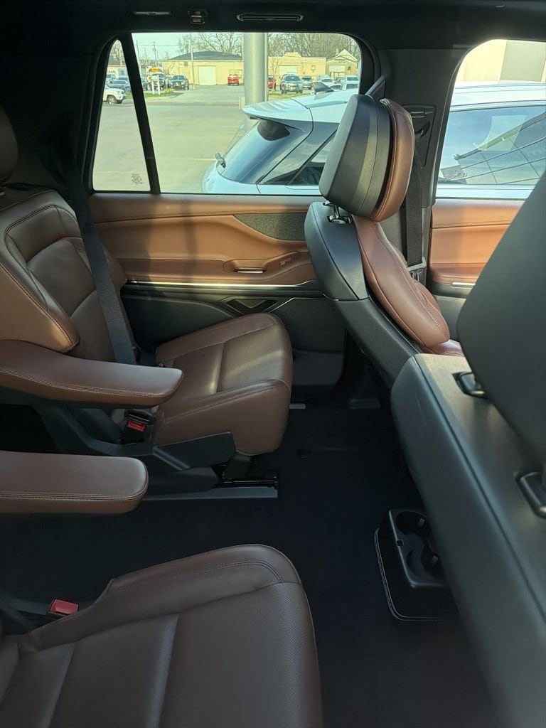 2025 Lincoln Navigator L Reserve We want you to shop confidently for your next used car at The BIG Ford Store, D-Patrick Ford. We are located on Highway 41 and Walnut in Evansville, right next to the Lloyd Expressway. Buy this used vehicle 100% online or in-store. This pre-owned vehicle was put through an extensive inspection before hitting our lot. Because of this, we are able to offer a 3-month/3,000-mile comprehensive limited warranty. You also get our Love It or Return It 5-day, 300-mile Exchange Policy. See our website for more details on both. We also offer extended service plans, vehicle protection plans, and offer a CarFax vehicle history report. *Prices listed do not include a $250 documentation fee, applicable tax, title, tags, license, or $195 service and preparation. All pricing, vehicle information, and features (such as accessories and color) are believed to be accurate, but we do not warrant or guarantee such accuracy. The prices shown above may vary from region to region, and incentives are subject to change. Some offers listed may not be available to all customers. All online sale commitments are subject to confirmation of continued availability of vehicle. Once availability is confirmed, online sale agreement becomes binding upon the parties. If any information found on the website is thought to be erroneous, please verify information with a customer service representative. See dealer for full details. Looking to sell your current vehicle? We buy cars for cash. Every test drive at D-Patrick Ford in Evansville earns $10 to a local charity. Schedule your test drive today! 28 Speakers, 3rd row seats: split-bench, 4-Wheel Disc Brakes, ABS brakes, Adaptive suspension, Adjustable pedals, Air Conditioning, Alloy wheels, AM/FM radio: SiriusXM with 360L, Apple CarPlay/Android Auto, Audio memory, Auto High-beam Headlights, Auto Htd & Ventilated Premium Lthr Captain's Chair, Auto Start-Stop Technology, Auto tilt-away steering wheel, Auto-dimming door mirrors, Auto-dimming Rear-View mirror, Auto-leveling suspension, Automatic temperature control, Brake assist, Bumpers: body-color, Compass, Delay-off headlights, Driver door bin, Driver vanity mirror, Driver's Seat Mounted Armrest, Dual front impact airbags, Dual front side impact airbags, Electronic Stability Control, Emergency communication system: 911 Assist, Equipment Group 202A Reserve II, Exterior Parking Camera Rear, Four wheel independent suspension, Front anti-roll bar, Front Bucket Seats, Front dual zone A/C, Front License Plate Bracket, Front reading lights, Fully automatic headlights, Garage door transmitter, Heated door mirrors, Heated front seats, Heated rear seats, Heated steering wheel, HVAC memory, Illuminated entry, Leather steering wheel, Lincoln Connect, Lincoln Premium Connectivity, Low tire pressure warning, Memory seat, Navigation system: Connected Navigation (1-year trial), Occupant sensing airbag, Outside temperature display, Overhead airbag, Overhead console, Panic alarm, Passenger door bin, Passenger seat mounted armrest, Passenger vanity mirror, Pedal memory, Power adjustable front head restraints, Power adjustable rear head restraints, Power door mirrors, Power driver seat, Power moonroof, Power passenger seat, Power steering, Power windows, Radio data system, Radio: Revel Ultima 3D AM/FM/HD Audio System, Rain sensing wipers, Rear air conditioning, Rear anti-roll bar, Rear audio controls, Rear reading lights, Rear window defroster, Rear window wiper, Reclining 3rd row seat, Remote keyless entry, Security system, SiriusXM w/360L, Speed control, Speed-sensing steering, Speed-Sensitive Wipers, Split folding rear seat, Spoiler, Steering wheel memory, Steering wheel mounted audio controls, Tachometer, Telescoping steering wheel, Tilt steering wheel, Traction control, Trip computer, Turn signal indicator mirrors, Variably intermittent wipers, Ventilated front seats, Wheels: 22 Dark Tarnished Aluminum. CARFAX One-Owner. 4D Sport Utility Reserve 10-Sp