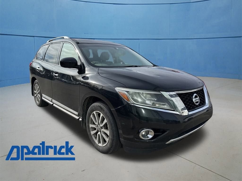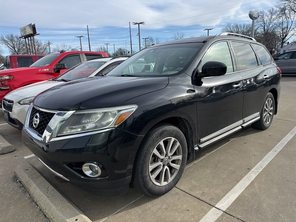2015 Nissan Pathfinder SL Recent Arrival! VEHICLE SOLD AS-IS. We want you to shop confidently for your next used car at The BIG Ford Store, D-Patrick Ford. We are located on Highway 41 and Walnut in Evansville, right next to the Lloyd Expressway. This vehicleâs low price is reflective of its age, condition, and mileage and we do not warrant its mechanical or overall condition. This vehicle is provided with a free to you CarFax vehicle history report. This is an AS-IS vehicle and is not available for additional service plans. *Prices listed do not include a $250 documentation fee, applicable tax, title, tags, license, or $195 service and preparation. All pricing, vehicle information, and features (such as accessories and color) are believed to be accurate, but we do not warrant or guarantee such accuracy. The prices shown above may vary from region to region, and incentives are subject to change. Some offers listed may not be available to all customers. All online sale commitments are subject to confirmation of continued availability of vehicle. Once availability is confirmed, online sale agreement becomes binding upon the parties. If any information found on the website is thought to be erroneous, please verify information with a customer service representative. See dealer for full details. Looking to sell your current vehicle? We buy cars for cash. Every test drive at D-Patrick Ford in Evansville earns $10 to a local charity. Schedule your test drive today! 4WD, 18 Alloy Wheels, 3rd row seats: bench, 4-Wheel Disc Brakes, 5.577 Axle Ratio, 6 Speakers, 7-Pin Trailer Wiring Harness, ABS brakes, Activation Disclaimer, Air Conditioning, Alloy wheels, AM/FM radio: SiriusXM, Auto-dimming Rear-View mirror, Automatic temperature control, Black Splash Guards 4-Piece, Bodyside moldings, Brake assist, Bumpers: body-color, Cargo Package, Carpeted Floor Mat (4-Pc Set), CD player, Compass, Driver door bin, Driver vanity mirror, Dual front impact airbags, Dual front side impact airbags, Dual Panorama Moonroof, Electronic Stability Control, First Aid Kit, Four wheel independent suspension, Front anti-roll bar, Front Bucket Seats, Front Center Armrest w/Storage, Front dual zone A/C, Front fog lights, Front reading lights, Fully automatic headlights, Garage door transmitter: HomeLink, Heated door mirrors, Heated Front & Rear Bucket Seats, Heated front seats, Heated rear seats, Illuminated entry, Leather Seating Surfaces, Leather Shift Knob, Leather steering wheel, Low Cost Around View Monitor System, Low tire pressure warning, Memory seat, Occupant sensing airbag, Outside temperature display, Overhead airbag, Overhead console, Panic alarm, Passenger door bin, Passenger vanity mirror, Power door mirrors, Power driver seat, Power Liftgate, Power passenger seat, Power steering, Power windows, Radio data system, Radio: AM/FM/RDS/MP3/1CD Audio System w/6-Speakers, Radio: Bose Audio System w/AM/FM/CD & 13 Speakers, Rear air conditioning, Rear anti-roll bar, Rear Bumper Protector, Rear Parking Sensors, Rear reading lights, Rear seat center armrest, Rear window defroster, Rear window wiper, Reclining 3rd row seat, Remote keyless entry, Roof rack: rails only, Security system, SL Premium Package, Speed control, Speed-sensing steering, Speed-Sensitive Wipers, Split folding rear seat, Spoiler, Steering wheel mounted audio controls, Tachometer, Telescoping steering wheel, Tilt steering wheel, Tonneau Cover, Tow Hitch Receiver w/Finisher, Traction control, Trip computer, Variably intermittent wipers, 4WD. 4D Sport Utility SL CVT with Xtronic 3.5L V6 4WD Magnetic Black CALL TODAY (812) 625-4823 OR SHOP ONLINE AT WWW.DPATRICKFORD.COM.