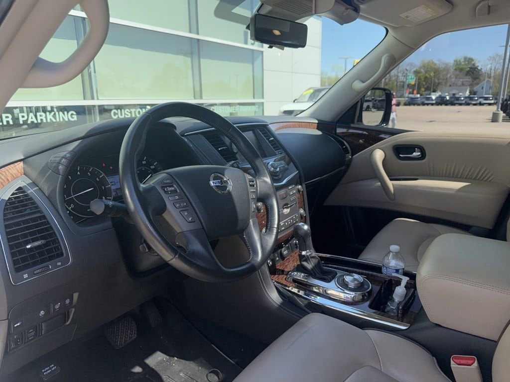 Every test drive at D-Patrick Ford in Evansville earns $10 to a local charity. Schedule your test drive today! 4WD, 13 Speakers, 2.937 Axle Ratio, 2nd Row Captain's Chairs, 2nd Row Center Console w/ Padded Armrest, 3rd row seats: split-bench, 4-Wheel Disc Brakes, A/V remote, ABS brakes, Air Conditioning, Alloy wheels, AM/FM radio: SiriusXM, Anti-whiplash front head restraints, Auto tilt-away steering wheel, Auto-dimming door mirrors, Auto-dimming Rear-View mirror, Auto-leveling suspension, Automatic temperature control, Brake assist, Bumpers: body-color, Captain's Chairs Package, Cargo Package, Carpeted Floor Mats w/ Captain Seat Package, CD player, Cross Bars, Delay-off headlights, Driver door bin, Driver vanity mirror, Dual front impact airbags, Dual front side impact airbags, Electronic Stability Control, Emergency communication system: NissanConnect Services, Four wheel independent suspension, Front anti-roll bar, Front Bucket Seats, Front Center Armrest, Front dual zone A/C, Front fog lights, Front reading lights, Fully automatic headlights, Garage door transmitter: HomeLink, Headphones, Heated & Cooled Front Bucket Seats w/Driver Memory, Heated door mirrors, Heated front seats, Heated rear seats, Heated steering wheel, Illuminated entry, Illuminated Kick Plates, Leather Shift Knob, Leather-Appointed Seat Trim, Low tire pressure warning, Memory seat, Navigation System, Occupant sensing airbag, Outside temperature display, Overhead airbag, Overhead console, Panic alarm, Passenger door bin, Passenger vanity mirror, Power door mirrors, Power driver seat, Power Liftgate, Power moonroof, Power passenger seat, Power steering, Power windows, Radio data system, Radio: AM/FM/SXM/CD/MP3/HD, Rain sensing wipers, Rear air conditioning, Rear anti-roll bar, Rear reading lights, Rear seat center armrest, Rear window defroster, Rear window wiper, Reclining 3rd row seat, Remote keyless entry, Roof rack: rails only, Security system, Special Paint - Pearl White, Speed control, Speed-sensing steering, Speed-Sensitive Wipers, Split folding rear seat, Spoiler, Steering wheel memory, Steering wheel mounted audio controls, Tachometer, Telescoping steering wheel, Tilt steering wheel, Traction control, Trip computer, Turn signal indicator mirrors, Variably intermittent wipers, Ventilated front seats, Voltmeter, Welcome Lighting, Wheels: 20 Machine-Faced Chrome w/Tinted CC, 4WD. Clean CARFAX. 4D Sport Utility Platinum 7-Speed Automatic 5.6L V8 DOHC 32V Endurance 4WD Pearl White Tricoat CALL TODAY (812) 625-4823 OR SHOP ONLINE AT WWW.DPATRICKFORD.COM.