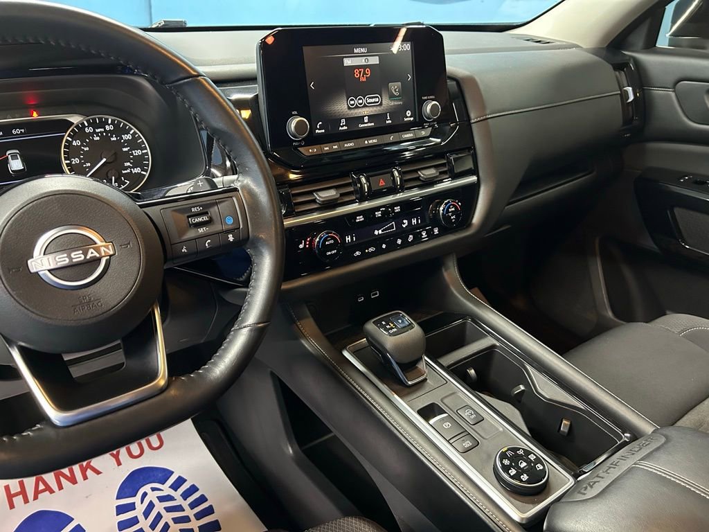 2022 Nissan Pathfinder SV We want you to shop confidently for your next used car at D-Patrick Lebanon Ford and We make it EASY! Buy this used vehicle 100% online or in-store, EASY. Saving time at the dealership, EASY! Financing, EASY! Finding the car you love at the price you want, EASY! We also offer extended service plans, vehicle protection plans, and CarFax vehicle history report. *Prices listed do not include a $250 documentation fee, applicable tax, title, tags, license, or $195 service and preparation. All pricing, vehicle information, and features (such as accessories and color) are believed to be accurate, but we do not warrant or guarantee such accuracy. The prices shown above may vary from region to region, and incentives are subject to change. Some offers listed may not be available to all customers. All online sale commitments are subject to confirmation of continued availability of vehicle. Once availability is confirmed, online sale agreement becomes binding upon the parties. If any information found on the website is thought to be erroneous, please verify information with a customer service representative. See dealer for full details. Looking to sell your current vehicle? We buy cars for cash. 4WD, 18" Painted Alloy Wheels, 3rd row seats: bench, 4-Wheel Disc Brakes, 6 Speakers, ABS brakes, Air Conditioning, Alloy wheels, AM/FM radio: SiriusXM, Auto High-beam Headlights, Automatic temperature control, Axle Ratio: TBD, Bench Seat Carpeted Floor Mats (Set of 4), Brake assist, Bumpers: body-color, Cloth Seating Surfaces, Delay-off headlights, Driver door bin, Driver vanity mirror, Dual front impact airbags, Dual front side impact airbags, Electronic Stability Control, Emergency communication system: NissanConnect Services, Four wheel independent suspension, Front anti-roll bar, Front Bucket Seats, Front Center Armrest, Front dual zone A/C, Front reading lights, Fully automatic headlights, Heated door mirrors, Heated Front Bucket Seats, Heated front seats, Illuminated entry, Knee airbag, Leather steering wheel, Low tire pressure warning, NissanConnect featuring Apple CarPlay and Android Auto, Occupant sensing airbag, Outside temperature display, Overhead airbag, Overhead console, Panic alarm, Passenger door bin, Passenger vanity mirror, Power door mirrors, Power driver seat, Power steering, Power windows, Radio data system, Radio: AM/FM Audio System w/NissanConnect, Rear air conditioning, Rear anti-roll bar, Rear Parking Sensors, Rear reading lights, Rear seat center armrest, Rear side impact airbag, Rear window defroster, Rear window wiper, Reclining 3rd row seat, Remote keyless entry, Security system, Speed control, Speed-sensing steering, Split folding rear seat, Spoiler, Steering wheel mounted audio controls, Tachometer, Telescoping steering wheel, Tilt steering wheel, Traction control, Trip computer, Turn signal indicator mirrors, Variably intermittent wipers, 4WD. Clean CARFAX. 4D Sport Utility SV 9-Speed Automatic V6 4WD Super Black CALL US TODAY BEFORE THIS ONE GETS AWAY-- (765) 204-6248 or shop online at www.dpatricklebanonford.com.