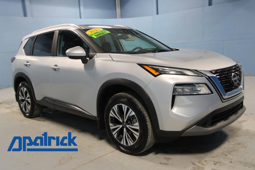 2023 Nissan Rogue SV We want you to shop confidently for your next used car at The BIG Ford Store, D-Patrick Ford. We are located on Highway 41 and Walnut in Evansville, right next to the Lloyd Expressway. Buy this used vehicle 100% online or in-store. This pre-owned vehicle was put through an extensive inspection before hitting our lot. Because of this, we are able to offer a 3-month/3,000-mile comprehensive limited warranty. You also get our Love It or Return It 5-day, 300-mile Exchange Policy. See our website for more details on both. We also offer extended service plans, vehicle protection plans, and offer a CarFax vehicle history report. *Prices listed do not include a $250 documentation fee, applicable tax, title, tags, license, or $195 service and preparation. All pricing, vehicle information, and features (such as accessories and color) are believed to be accurate, but we do not warrant or guarantee such accuracy. The prices shown above may vary from region to region, and incentives are subject to change. Some offers listed may not be available to all customers. All online sale commitments are subject to confirmation of continued availability of vehicle. Once availability is confirmed, online sale agreement becomes binding upon the parties. If any information found on the website is thought to be erroneous, please verify information with a customer service representative. See dealer for full details. Looking to sell your current vehicle? We buy cars for cash. Every test drive at D-Patrick Ford in Evansville earns $10 to a local charity. Schedule your test drive today! AWD, 18 Aluminum Alloy Wheels, 4-Wheel Disc Brakes, 5.604 Axle Ratio, 6 Speakers, ABS brakes, Air Conditioning, Alloy wheels, AM/FM Radio, AM/FM radio: SiriusXM, Auto High-beam Headlights, Automatic temperature control, Black Splash Guards (Set of 4), Brake assist, Bumpers: body-color, Chrome Rear Bumper Protector, Cloth Seat Trim, Delay-off headlights, Driver door bin, Driver vanity mirror, Dual front impact airbags, Dual front side impact airbags, Electronic Stability Control, Emergency communication system: NissanConnect Services, First Aid Kit, Floor Mats w/1-Piece Cargo Area Protector, Four wheel independent suspension, Front anti-roll bar, Front Bucket Seats, Front Center Armrest, Front dual zone A/C, Front reading lights, Fully automatic headlights, Heated door mirrors, Heated Driver & Front Passenger Seats, Heated Leather Wrapped Steering Wheel, Illuminated entry, Knee airbag, Leatherette Door Trim Inserts w/Stitch, Low tire pressure warning, NissanConnect featuring Apple CarPlay and Android Auto, Occupant sensing airbag, Outside temperature display, Overhead airbag, Overhead console, Panic alarm, Panoramic Moonroof, Passenger door bin, Passenger vanity mirror, Power door mirrors, Power driver seat, Power Liftgate, Power steering, Power windows, PRIMATEX Leatherette Seat Trim, Radio data system, Rear anti-roll bar, Rear Door Sunshades, Rear Parking Sensors, Rear Personal Lights, Rear seat center armrest, Rear side impact airbag, Rear window defroster, Rear window wiper, Remote keyless entry, Security Alarm, Silver Painted Roof Rails, Speed control, Speed-Sensitive Wipers, Split folding rear seat, Spoiler, Steering wheel mounted audio controls, SV Premium B Package, Tachometer, Telescoping steering wheel, Tilt steering wheel, Traction control, Trip computer, Variably intermittent wipers, AWD. CARFAX One-Owner. 4D Sport Utility SV CVT with Xtronic 1.5L I3 Turbocharged DOHC 12V LEV3-ULEV50 201hp AWD Brilliant Silver Metallic CALL TODAY (812) 625-4823 OR SHOP ONLINE AT WWW.DPATRICKFORD.COM.