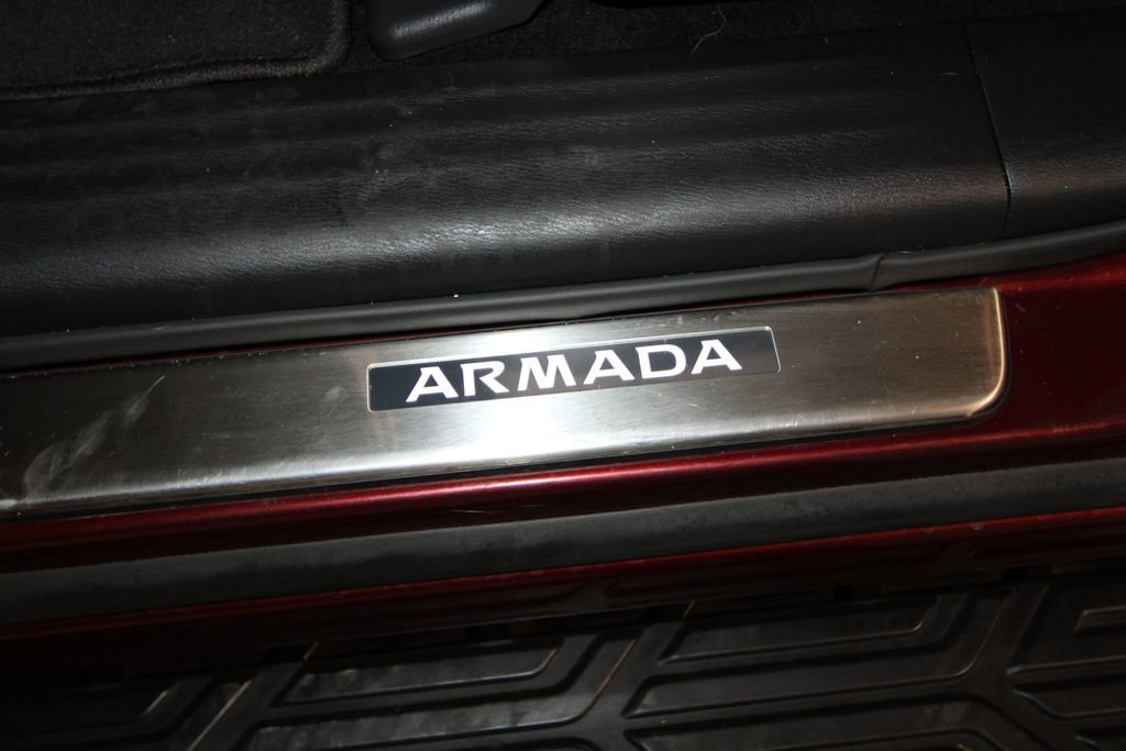 2024 Nissan Armada Platinum **Prices listed do not include a $250 documentation fee, applicable tax, title, tags, license, or $195 service and preparation. All pricing, vehicle information, and features (such as accessories and color) are believed to be accurate, but we do not warrant or guarantee such accuracy. The prices shown above may vary from region to region, and incentives are subject to change. Some offers listed may not be available to all customers. All online sale commitments are subject to confirmation of continued availability of vehicle. Once availability is confirmed, online sale agreement becomes binding upon the parties. If any information found on the website is thought to be erroneous, please verify information with a customer service representative. See dealer for full details. 13 Speakers, 2.937 Axle Ratio, 2nd Row Captain's Chairs, 2nd Row Center Console w/Padded Armrest, 3rd Row Carpeted Floor Mats - Captain Seat, 3rd row seats: split-bench, 4-Wheel Disc Brakes, ABS brakes, Air Conditioning, Alloy wheels, AM/FM radio: SiriusXM, Anti-whiplash front head restraints, Auto High-beam Headlights, Auto tilt-away steering wheel, Auto-dimming door mirrors, Auto-dimming Rear-View mirror, Auto-leveling suspension, Automatic temperature control, Brake assist, Bumpers: body-color, Captain's Chairs Package, Cargo Package, Climate-Controlled Front Bucket Seats, Delay-off headlights, Driver door bin, Driver vanity mirror, Dual front impact airbags, Dual front side impact airbags, Electronic Stability Control, Emergency communication system: NissanConnect Services, Exterior Parking Camera Rear, Four wheel independent suspension, Front anti-roll bar, Front Bucket Seats, Front Center Armrest, Front dual zone A/C, Front fog lights, Front reading lights, Fully automatic headlights, Garage door transmitter: HomeLink, Heated door mirrors, Heated front seats, Heated rear seats, Heated steering wheel, HVAC memory, Illuminated entry, Illuminated Kick Plates, Illuminated Scuff Plate, Knee airbag, Leather Shift Knob, Leather steering wheel, Low tire pressure warning, Memory seat, Navigation System, Nissan USB Charging Cable Set, Occupant sensing airbag, Outside temperature display, Overhead airbag, Overhead console, Panic alarm, Passenger door bin, Passenger vanity mirror, Power door mirrors, Power driver seat, Power Liftgate, Power moonroof, Power passenger seat, Power steering, Power windows, Quilted Leather Seat Trim, Radio: NissanConnect w/SiriusXM, Rain sensing wipers, Rear air conditioning, Rear anti-roll bar, Rear reading lights, Rear seat center armrest, Rear window defroster, Rear window wiper, Reclining 3rd row seat, Remote keyless entry, Roof Rail Cross Bars - Gun Metal, Security system, Speed control, Speed-sensing steering, Speed-Sensitive Wipers, Split folding rear seat, Spoiler, Steering wheel memory, Steering wheel mounted audio controls, Tachometer, Telescoping steering wheel, Tilt steering wheel, Traction control, Trip computer, Turn signal indicator mirrors, Variably intermittent wipers, Ventilated front seats, Voltmeter, Wheels: 22 x 8J Machine-Faced w/Tinted Clear Coat. CARFAX One-Owner. Clean CARFAX. 4D Sport Utility Platinum 7-Speed Automatic 5.6L V8 DOHC 32V LEV3-ULEV125 400hp RWD Coulis Red Pearl