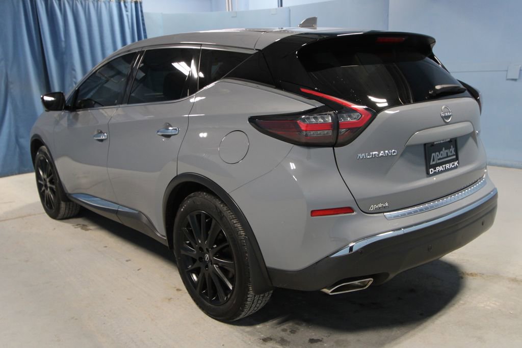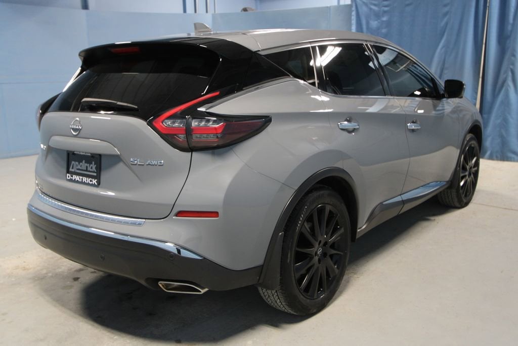 2024 Nissan Murano SL We want you to shop confidently for your next used car at The BIG Ford Store, D-Patrick Ford. We are located on Highway 41 and Walnut in Evansville, right next to the Lloyd Expressway. Buy this used vehicle 100% online or in-store. This pre-owned vehicle was put through an extensive inspection before hitting our lot. Because of this, we are able to offer a 3-month/3,000-mile comprehensive limited warranty. You also get our Love It or Return It 5-day, 300-mile Exchange Policy. See our website for more details on both. We also offer extended service plans, vehicle protection plans, and offer a CarFax vehicle history report. *Prices listed do not include a $250 documentation fee, applicable tax, title, tags, license, or $195 service and preparation. All pricing, vehicle information, and features (such as accessories and color) are believed to be accurate, but we do not warrant or guarantee such accuracy. The prices shown above may vary from region to region, and incentives are subject to change. Some offers listed may not be available to all customers. All online sale commitments are subject to confirmation of continued availability of vehicle. Once availability is confirmed, online sale agreement becomes binding upon the parties. If any information found on the website is thought to be erroneous, please verify information with a customer service representative. See dealer for full details. Looking to sell your current vehicle? We buy cars for cash. Every test drive at D-Patrick Ford in Evansville earns $10 to a local charity. Schedule your test drive today! CVT with Xtronic, AWD, 11 Speakers, 4-Wheel Disc Brakes, 4.667 Axle Ratio, ABS brakes, Air Conditioning, Alloy wheels, AM/FM radio: SiriusXM, AM/FM/CD/MP3/WMA Audio System, Auto High-beam Headlights, Auto-dimming Rear-View mirror, Automatic temperature control, Blind Spot Warning, Brake assist, Bumpers: body-color, Carpeted Floor Mats & Carpeted Cargo Mat, CD player, Child-Seat-Sensing Airbag, Compass, Delay-off headlights, Driver door bin, Driver vanity mirror, Dual front impact airbags, Dual front side impact airbags, Electronic Stability Control, Exterior Parking Camera Rear, Four wheel independent suspension, Front anti-roll bar, Front Bucket Seats, Front Center Armrest, Front dual zone A/C, Front fog lights, Front reading lights, Fully automatic headlights, Garage door transmitter: HomeLink, Heated door mirrors, Heated Front Bucket Seats, Heated front seats, Heated rear seats, Heated steering wheel, Illuminated entry, Illuminated Kick Plates, Illuminated Kick Plates (PIO), Knee airbag, Leather steering wheel, Leather-Appointed Seat Trim, Low tire pressure warning, Memory seat, Navigation system: NissanConnect with Navigation and Services, NissanConnect featuring Apple CarPlay and Android Auto, Occupant sensing airbag, Outside temperature display, Overhead airbag, Overhead console, Panic alarm, Passenger door bin, Passenger vanity mirror, Power door mirrors, Power driver seat, Power Liftgate, Power moonroof, Power passenger seat, Power steering, Power windows, Radio data system, Rear anti-roll bar, Rear Bumper Protector, Rear reading lights, Rear seat center armrest, Rear side impact airbag, Rear window defroster, Rear window wiper, Remote keyless entry, Security system, Speed control, Speed-sensing steering, Speed-Sensitive Wipers, Splash Guards (B92), Split folding rear seat, Spoiler, Steering wheel mounted audio controls, Tachometer, Telescoping steering wheel, Tilt steering wheel, Traction control, Trip computer, Turn signal indicator mirrors, Variably intermittent wipers, Wheels: 20 Black Satin Alloy, Wheels: 20 Machined Aluminum-Alloy, CVT with Xtronic, AWD. CARFAX One-Owner. Clean CARFAX. 4D Sport Utility SL CVT with Xtronic 3.5L V6 DOHC 24V AWD Boulder Gray Pearl CALL TODAY (812) 625-4823 OR SHOP ONLINE AT WWW.DPATRICKFORD.COM.