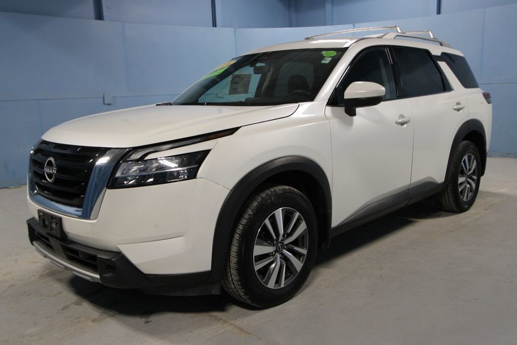 2024 Nissan Pathfinder SL We want you to shop confidently for your next used car at The BIG Ford Store, D-Patrick Ford. We are located on Highway 41 and Walnut in Evansville, right next to the Lloyd Expressway. Buy this used vehicle 100% online or in-store. This pre-owned vehicle was put through an extensive inspection before hitting our lot. Because of this, we are able to offer a 3-month/3,000-mile comprehensive limited warranty. You also get our Love It or Return It 5-day, 300-mile Exchange Policy. See our website for more details on both. We also offer extended service plans, vehicle protection plans, and offer a CarFax vehicle history report. *Prices listed do not include a $250 documentation fee, applicable tax, title, tags, license, or $195 service and preparation. All pricing, vehicle information, and features (such as accessories and color) are believed to be accurate, but we do not warrant or guarantee such accuracy. The prices shown above may vary from region to region, and incentives are subject to change. Some offers listed may not be available to all customers. All online sale commitments are subject to confirmation of continued availability of vehicle. Once availability is confirmed, online sale agreement becomes binding upon the parties. If any information found on the website is thought to be erroneous, please verify information with a customer service representative. See dealer for full details. Looking to sell your current vehicle? We buy cars for cash. Every test drive at D-Patrick Ford in Evansville earns $10 to a local charity. Schedule your test drive today! 4WD, 3rd row seats: bench, 4-Wheel Disc Brakes, 6 Speakers, ABS brakes, Air Conditioning, Alloy wheels, AM/FM radio: SiriusXM, Auto High-beam Headlights, Auto-dimming Rear-View mirror, Automatic temperature control, Axle Ratio: 4.334, Bench Seat Carpeted Floor Mats (Set of 4), Black Splash Guards (Set of 4), Brake assist, Bumpers: body-color, Cross Bars, Delay-off headlights, Driver door bin, Driver vanity mirror, Dual front impact airbags, Dual front side impact airbags, Electronic Stability Control, Emergency communication system, Exterior Parking Camera Rear, Four wheel independent suspension, Front anti-roll bar, Front Bucket Seats, Front Center Armrest, Front dual zone A/C, Front reading lights, Fully automatic headlights, Garage door transmitter: HomeLink, Heated door mirrors, Heated Front Bucket Seats, Heated front seats, Heated steering wheel, Illuminated entry, Knee airbag, Leather steering wheel, Leather-Appointed Seating Surfaces, Low tire pressure warning, Navigation system: NissanConnect with Navigation and Services, NissanConnect featuring Apple CarPlay and Android Auto, NissanConnect w/Navigation & Services, Occupant sensing airbag, Outside temperature display, Overhead airbag, Overhead console, Panic alarm, Passenger door bin, Passenger vanity mirror, Power door mirrors, Power driver seat, Power Liftgate, Power passenger seat, Power steering, Power windows, Radio data system, Radio: AM/FM Audio System, Rear air conditioning, Rear anti-roll bar, Rear reading lights, Rear seat center armrest, Rear side impact airbag, Rear window defroster, Rear window wiper, Reclining 3rd row seat, Remote keyless entry, Security system, Speed control, Speed-sensing steering, Split folding rear seat, Spoiler, Steering wheel mounted audio controls, Tachometer, Telescoping steering wheel, Tilt steering wheel, Traction control, Trip computer, Turn signal indicator mirrors, Variably intermittent wipers, Wheels: 18 x 8J Machined Alloy, 4WD. CARFAX One-Owner. Clean CARFAX. 4D Sport Utility SL 9-Speed Automatic 3.5L V6 DOHC 4WD Pearl White Tricoat CALL TODAY (812) 625-4823 OR SHOP ONLINE AT WWW.DPATRICKFORD.COM.
