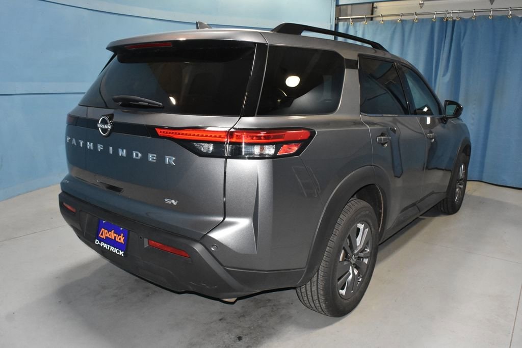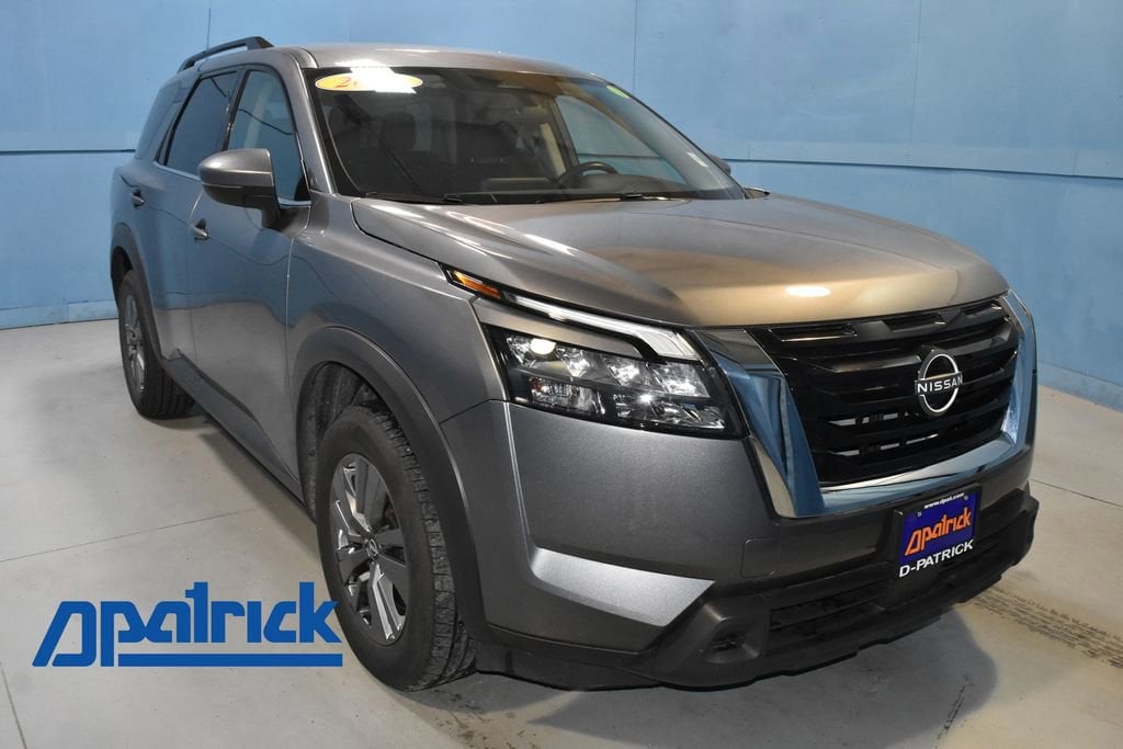 2024 Nissan Pathfinder SV Buy this used vehicle 100% online or in-store. We want you to shop confidently for your next used car at D-Patrick #1 Used Cars on Green River Road. D-Patrick #1 Used Cars are put through an extensive inspection before hitting our lot. Because of this, we are able to offer a 3-month/3,000-mile comprehensive limited warranty. You also get our Love It or Return It 5-day, 300-mile Exchange Policy. See our website for more details on both. We also offer extended warranties, additional protection plans, and offer a CarFax vehicle history report. We have a large selection of D-Patrick #1 Used Cars and AS-IS vehicles, all in one location with sale prices starting as low as $2500. We also have a large selection of certified, Audi, BMW, Mercedes-Benz, Porsche, Volkswagen, Ford, Lincoln, Honda, and Nissan. Looking to sell your current vehicle? We have partnered with Kelley Blue Book as Evansville's Instant Cash Offer Buying Center. *Prices listed do not include a $250 documentation fee, applicable tax, title, tags, license, or $195 service and preparation. All pricing, vehicle information, and features (such as accessories and color) are believed to be accurate, but we do not warrant or guarantee such accuracy. The prices shown above may vary from region to region, and incentives are subject to change. Some offers listed may not be available to all customers. All online sale commitments are subject to confirmation of continued availability of vehicle. Once availability is confirmed, online sale agreement becomes binding upon the parties. If any information found on the website is thought to be erroneous, please verify information with a customer service representative. See dealer for full details. 3rd row seats: bench, 4-Wheel Disc Brakes, 6 Speakers, ABS brakes, Air Conditioning, Alloy wheels, AM/FM radio: SiriusXM, Auto High-beam Headlights, Automatic temperature control, Axle Ratio: 4.334, Brake assist, Bumpers: body-color, Cloth Seating Surfaces, Delay-off headlights, Driver door bin, Driver vanity mirror, Dual front impact airbags, Dual front side impact airbags, Electronic Stability Control, Emergency communication system, Four wheel independent suspension, Front anti-roll bar, Front Bucket Seats, Front Center Armrest, Front dual zone A/C, Front reading lights, Fully automatic headlights, Heated door mirrors, Heated Front Bucket Seats, Heated front seats, Illuminated entry, Knee airbag, Leather steering wheel, Low tire pressure warning, NissanConnect featuring Apple CarPlay and Android Auto, Occupant sensing airbag, Outside temperature display, Overhead airbag, Overhead console, Panic alarm, Passenger door bin, Passenger vanity mirror, Power door mirrors, Power driver seat, Power steering, Power windows, Radio data system, Radio: AM/FM Audio System w/NissanConnect, Rear air conditioning, Rear anti-roll bar, Rear Parking Sensors, Rear reading lights, Rear seat center armrest, Rear side impact airbag, Rear window defroster, Rear window wiper, Reclining 3rd row seat, Remote keyless entry, Security system, Speed control, Speed-sensing steering, Split folding rear seat, Spoiler, Steering wheel mounted audio controls, Tachometer, Telescoping steering wheel, Tilt steering wheel, Traction control, Trip computer, Turn signal indicator mirrors, Variably intermittent wipers, Wheels: 18 x 8J Painted Alloy. Clean CARFAX. 4D Sport Utility SV 9-Speed Automatic 3.5L V6 DOHC FWD Gun Metallic CALL US TODAY 812-471-7791 and shop online at www.evansvilleusedcars.com.