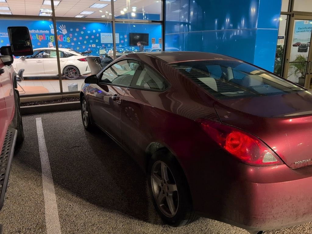 2008 Pontiac G6 GT Recent Arrival! **Prices listed do not include a $250 documentation fee, applicable tax, title, tags, license, or $195 service and preparation. All pricing, vehicle information, and features (such as accessories and color) are believed to be accurate, but we do not warrant or guarantee such accuracy. The prices shown above may vary from region to region, and incentives are subject to change. Some offers listed may not be available to all customers. All online sale commitments are subject to confirmation of continued availability of vehicle. Once availability is confirmed, online sale agreement becomes binding upon the parties. If any information found on the website is thought to be erroneous, please verify information with a customer service representative. See dealer for full details. 3.5L V6 SFI VVT, 17 Chrome-Tech Cast Aluminum Wheels, 4-Wheel Disc Brakes, 8 Speakers, ABS brakes, Air Conditioning, Alloy wheels, AM/FM radio: XM, AM/FM Stereo w/CD Player/XM Satellite, Bumpers: body-color, CD player, Delay-off headlights, Driver door bin, Driver vanity mirror, Dual front impact airbags, Dual front side impact airbags, Emergency communication system: OnStar Safe & Sound, Four wheel independent suspension, Front anti-roll bar, Front Bucket Seats, Front Center Armrest, Front fog lights, Front reading lights, Front Reclining 45/45 Bucket Seats, Fully automatic headlights, Illuminated entry, Impression Cloth Seat Trim, Low tire pressure warning, Occupant sensing airbag, Outside temperature display, Overhead airbag, Panic alarm, Passenger door bin, Passenger vanity mirror, Power door mirrors, Power driver seat, Power steering, Power windows, Radio data system, Rear anti-roll bar, Rear window defroster, Remote keyless entry, Security system, Speed control, Speed-Sensitive Wipers, Split folding rear seat, Steering wheel mounted audio controls, Tachometer, Telescoping steering wheel, Tilt steering wheel, Traction control, Trip computer, Variably intermittent wipers, XM Satellite Radio, 3.5L V6 SFI VVT. Clean CARFAX. 2D Coupe GT 4-Speed Automatic with Overdrive 3.5L V6 SFI VVT FWD Performance Red Metallic (812) 477-6201 and shop online at www.dpathonda.com.
