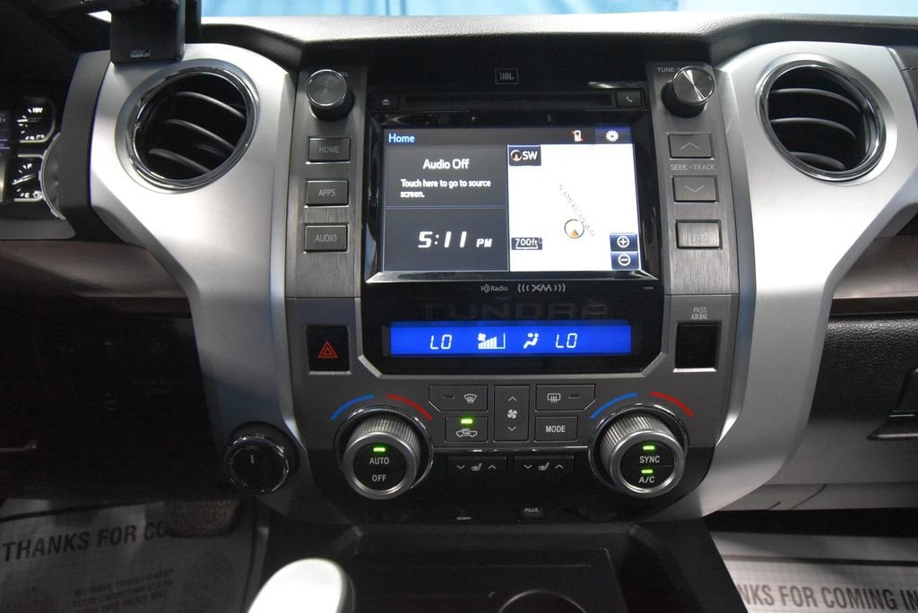 2019 Toyota Tundra Limited Recent Arrival! VEHICLE SOLD AS-IS. We want you to shop confidently for your next used car at The BIG Ford Store, D-Patrick Ford. We are located on Highway 41 and Walnut in Evansville, right next to the Lloyd Expressway. This vehicleâs low price is reflective of its age, condition, and mileage and we do not warrant its mechanical or overall condition. This vehicle is provided with a CarFax vehicle history report. This is an AS-IS vehicle and is not available for additional service plans. *Prices listed do not include applicable tax, title, tags, license. Prices include at $250 Documentation Fee and $195 Service & Preparation. All pricing, vehicle information, and features (such as accessories and color) are believed to be accurate, but we do not warrant or guarantee such accuracy. The prices shown above may vary from region to region, and incentives are subject to change. Some offers listed may not be available to all customers. All online sale commitments are subject to confirmation of continued availability of vehicle. Once availability is confirmed, online sale agreement becomes binding upon the parties. If any information found on the website is thought to be erroneous, please verify information with a customer service representative. See dealer for full details. Looking to sell your current vehicle? We buy cars for cash. Every test drive at D-Patrick Ford in Evansville earns $10 to a local charity. Schedule your test drive today! 4WD, Black Leather, 4-Wheel Disc Brakes, 4.30 Axle Ratio, 9 Speakers, ABS brakes, Air Conditioning, Alloy wheels, AM/FM radio: SiriusXM, Auto High-beam Headlights, Auto-dimming Rear-View mirror, Automatic temperature control, Brake assist, CD player, Compass, Delay-off headlights, Driver door bin, Driver vanity mirror, Dual front impact airbags, Dual front side impact airbags, Electronic Stability Control, Exterior Parking Camera Rear, Front anti-roll bar, Front Bucket Seats, Front Center Armrest, Front dual zone A/C, Front fog lights, Front reading lights, Front wheel independent suspension, Fully automatic headlights, Garage door transmitter: HomeLink, Heated door mirrors, Heated Front Bucket Seats, Heated front seats, Illuminated entry, Knee airbag, Leather Seat Trim (LB), Low tire pressure warning, Navigation System, Occupant sensing airbag, Outside temperature display, Overhead airbag, Overhead console, Panic alarm, Passenger door bin, Passenger vanity mirror, Power door mirrors, Power driver seat, Power passenger seat, Power steering, Power windows, Radio data system, Radio: Entune Premium Audio AM/FM w/HD Radio & CD, Rear reading lights, Rear seat center armrest, Rear step bumper, Rear window defroster, Remote keyless entry, Security system, Speed control, Speed-sensing steering, Split folding rear seat, Steering wheel mounted audio controls, Tachometer, Telescoping steering wheel, Tilt steering wheel, Traction control, Trip computer, Variably intermittent wipers, Voltmeter, Wheels: 20 x 8J Split 5-Spoke Machined Alloy, 4WD, Black Leather. 4D CrewMax Limited 6-Speed Automatic Electronic i-Force 5.7L V8 DOHC 32V LEV 4WD Super White CALL US TODAY BEFORE THIS ONE GETS AWAY-- (812) 897-5838 or shop online at www.boonvilleford.com.