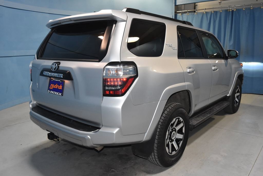 2024 Toyota 4Runner TRD Off-Road Premium We want you to shop confidently for your next used car at D-Patrick Motoplex on Green River Road. Buy this used vehicle 100% online or in-store. This pre-owned vehicle was put through an extensive inspection before hitting our lot. Because of this, we are able to offer a 3-month/3,000-mile comprehensive limited warranty. You also get our Love It or Return It 5-day, 300-mile Exchange Policy. See our website for more details on both. We also offer extended warranties, additional protection plans, and offer a CarFax vehicle history report. *Prices listed do not include a $250 documentation fee, applicable tax, title, tags, license, or $195 service and preparation. All pricing, vehicle information, and features (such as accessories and color) are believed to be accurate, but we do not warrant or guarantee such accuracy. The prices shown above may vary from region to region, and incentives are subject to change. Some offers listed may not be available to all customers. All online sale commitments are subject to confirmation of continued availability of vehicle. Once availability is confirmed, online sale agreement becomes binding upon the parties. If any information found on the website is thought to be erroneous, please verify information with a customer service representative. See dealer for full details. Looking to sell your current vehicle? We are Evansville's KBB Instant Cash Offer Buying Center. 4WD, Black/Graphite w/SofTex Seat Trim, 4-Wheel Disc Brakes, 8 Speakers, ABS brakes, Air Conditioning, Alloy wheels, AM/FM radio: SiriusXM, Anti-whiplash front head restraints, Apple CarPlay/Android Auto, Auto High-beam Headlights, Auto-dimming Rear-View mirror, Black Roof Rails, Brake assist, Bumpers: body-color, Compass, Driver door bin, Driver vanity mirror, Dual front impact airbags, Dual front side impact airbags, Electronic Stability Control, Emergency communication system: Safety Connect (1-year trial), Exterior Parking Camera Rear, Front anti-roll bar, Front Bucket Seats, Front Center Armrest, Front fog lights, Front reading lights, Front wheel independent suspension, Garage Door Opener, Garage door transmitter: HomeLink, Heated door mirrors, Heated Front Bucket Seats, Heated front seats, Heated Outside Rear-View Mirrors, Heated steering wheel, Illuminated entry, Knee airbag, Leather Shift Knob, Low tire pressure warning, Navigation System, Occupant sensing airbag, Outside temperature display, Overhead airbag, Overhead console, Panic alarm, Passenger door bin, Passenger vanity mirror, Power door mirrors, Power driver seat, Power passenger seat, Power steering, Power windows, Radio: Premium Audio, Rear anti-roll bar, Rear seat center armrest, Rear window defroster, Rear window wiper, Remote keyless entry, Security system, SofTex Seat Trim, Speed control, Speed-sensing steering, Split folding rear seat, Spoiler, Steering wheel mounted audio controls, Tachometer, Telescoping steering wheel, Tilt steering wheel, Traction control, Trip computer, Turn signal indicator mirrors, Variably intermittent wipers, Wheels: 17 Unique 7-Spoke Off-Road Alloy, 4WD, Black/Graphite w/SofTex Seat Trim. CARFAX One-Owner. Clean CARFAX. 4D Sport Utility TRD Off-Road Premium 5-Speed with ECT 4.0L V6 DOHC 24V 4WD Classic Silver Metallic CALL US TODAY 812-471-7792 and shop online at www.dpat.com.