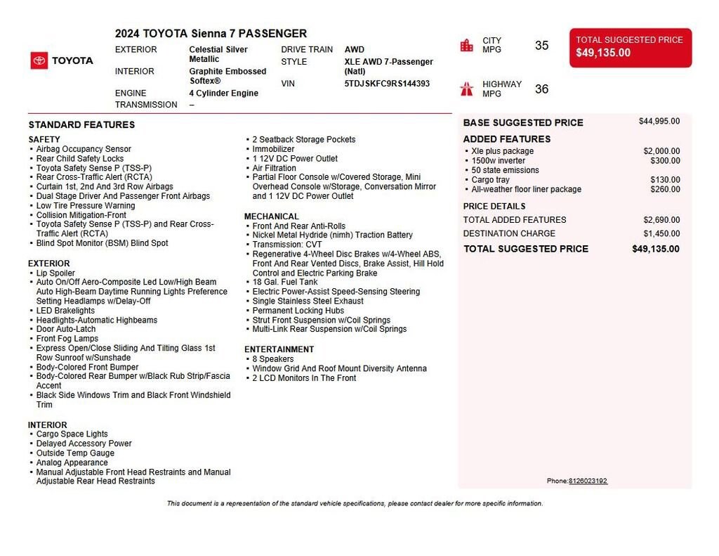 *Prices listed do not include a $250 documentation fee, applicable tax, title, tags, license, or $195 service and preparation. All pricing, vehicle information, and features (such as accessories and color) are believed to be accurate, but we do not warrant or guarantee such accuracy. The prices shown above may vary from region to region, and incentives are subject to change. Some offers listed may not be available to all customers. All online sale commitments are subject to confirmation of continued availability of vehicle. Once availability is confirmed, online sale agreement becomes binding upon the parties. If any information found on the website is thought to be erroneous, please verify information with a customer service representative. See dealer for full details.