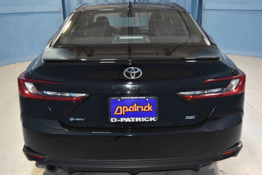 2025 Toyota Camry SE Hybrid We want you to shop confidently for your next used car at D-Patrick Nissan. Buy this used vehicle 100% online or in-store. This pre-owned vehicle was put through an extensive inspection before hitting our lot. Because of this, we are able to offer a 3-month/3,000-mile comprehensive limited warranty. You also get our Love It or Return It 5-day, 300-mile Exchange Policy. See our website for more details on both. We also offer extended warranties, additional protection plans, and offer a CarFax vehicle history report. We have a large selection of all makes and models in-stock today at the MEGASTORE. Looking to sell your current vehicle? We want to buy your car! *Prices listed do not include a $250 documentation fee, applicable tax, title, tags, license, or $195 service and preparation. All pricing, vehicle information, and features (such as accessories and color) are believed to be accurate, but we do not warrant or guarantee such accuracy. The prices shown above may vary from region to region, and incentives are subject to change. Some offers listed may not be available to all customers. All online sale commitments are subject to confirmation of continued availability of vehicle. Once availability is confirmed, online sale agreement becomes binding upon the parties. If any information found on the website is thought to be erroneous, please verify information with a customer service representative. See dealer for full details. Looking to sell your current vehicle? We buy cars for cash. 2.5L 4-Cylinder 16V DOHC, Black, ABS brakes, Active Cruise Control, Alloy wheels, Electronic Stability Control, Front dual zone A/C, Heated door mirrors, Illuminated entry, Low tire pressure warning, Remote keyless entry, Traction control. CARFAX One-Owner. Clean CARFAX. 4D Sedan Hybrid SE eCVT 2.5L 4-Cylinder 16V DOHC FWD Black CALL TODAY 812-473-6500 and shop online at www.dpatricknissan.com.