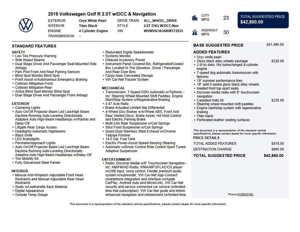 2019 Volkswagen Golf R DCC & Navigation 4motion