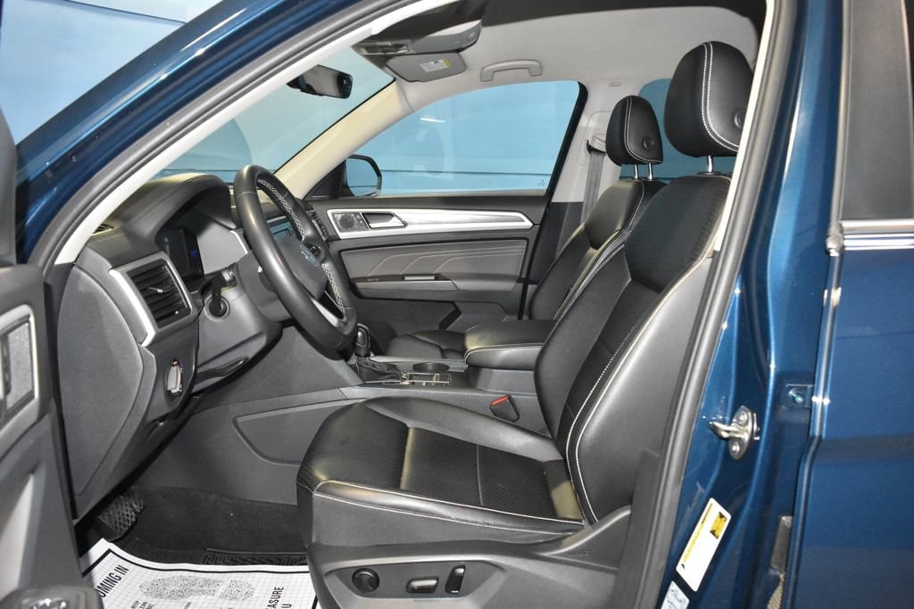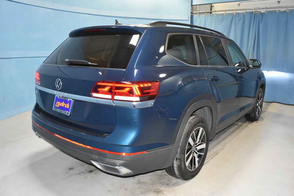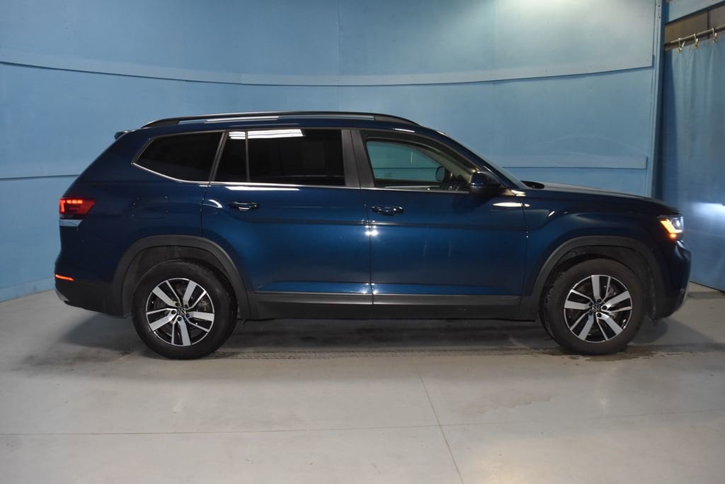 2022 Volkswagen Atlas 2.0T SE **Prices listed do not include a $250 documentation fee, applicable tax, title, tags, license, or $195 service and preparation. All pricing, vehicle information, and features (such as accessories and color) are believed to be accurate, but we do not warrant or guarantee such accuracy. The prices shown above may vary from region to region, and incentives are subject to change. Some offers listed may not be available to all customers. All online sale commitments are subject to confirmation of continued availability of vehicle. Once availability is confirmed, online sale agreement becomes binding upon the parties. If any information found on the website is thought to be erroneous, please verify information with a customer service representative. See dealer for full details. 3.60 Axle Ratio, 3rd row seats: split-bench, 4-Wheel Disc Brakes, 6 Speakers, ABS brakes, Air Conditioning, Alloy wheels, Auto-Dimming Rear-View Mirror, Auto-dimming Rear-View mirror, Brake assist, Bumpers: body-color, Compass, Delay-off headlights, Driver door bin, Driver vanity mirror, Dual front impact airbags, Dual front side impact airbags, Electronic Stability Control, Emergency communication system, Exterior Parking Camera Rear, Four wheel independent suspension, Front anti-roll bar, Front Bucket Seats, Front Center Armrest, Front fog lights, Front reading lights, Fully automatic headlights, Heated Comfort Front Bucket Seats, Heated door mirrors, Heated front seats, Illuminated entry, Low tire pressure warning, Occupant sensing airbag, Outside temperature display, Overhead airbag, Overhead console, Panic alarm, Passenger door bin, Passenger vanity mirror, Perforated V-Tex Leatherette Seating Surfaces, Power door mirrors, Power driver seat, Power steering, Power windows, Radio data system, Radio: Composition Color w/6.5 Touchscreen, Rain sensing wipers, Rear anti-roll bar, Rear reading lights, Rear seat center armrest, Rear window defroster, Rear window wiper, Remote keyless entry, Roof rack: rails only, Rubber Mats Kit - Bench Seats (DISC), Security system, Speed control, Speed-sensing steering, Split folding rear seat, Spoiler, Standard Suspension, Steering wheel mounted audio controls, Tachometer, Telescoping steering wheel, Tilt steering wheel, Traction control, Trip computer, Trunk Liner w/VW CarGo Blocks, Turn signal indicator mirrors, Variably intermittent wipers, VW Care, Wheels: 18 x 8J 5-Spoke 2-Tone Machined Alloy. Clean CARFAX. 4D Sport Utility 2.0T SE 8-Speed Automatic with Tiptronic 2.0L TSI FWD Blue Metallic