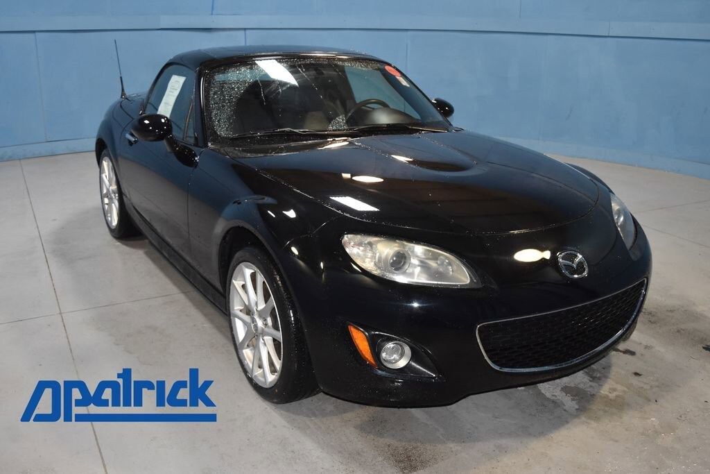 - PREMIUM PKG -inc: anti-theft alarm Bluetooth hands-free phone system Mazda advanced keyless entry system w/keyless start SIRIUS satellite radio w/(4) month subscription xenon HID headlights,CARPETED FLOOR MATS,SUSPENSION PKG -inc: sport-tuned suspension Bilstein shocks limited slip differential,BLACK LEATHER SEAT TRIM,BRILLIANT BLACK,Rear Wheel Drive,Power Steering,4-Wheel Disc Brakes,Aluminum Wheels,Tires - Front Performance,Tires - Rear Performance,Convertible Hardtop,Fog Lamps,Power Mirror(s),Intermittent Wipers,AM/FM Stereo,CD Changer,CD Player,Premium Sound System,MP3 Capability,Auxiliary Audio Input,Leather Seats,Bucket Seats,Heated Front Seat(s),Floor Mats,Cruise Control,Adjustable Steering Wheel,Steering Wheel Audio Controls,Leather Steering Wheel,Trip Computer,Power Windows,Power Door Locks,Keyless Entry,Power Door Locks,Remote Trunk Release,Cruise Control,Immobilizer,Climate Control,A/C,Rear Defrost,Power Outlet,Auto-Dimming Rearview Mirror,Universal Garage Door Opener,Driver Vanity Mirror,Passenger Vanity Mirror,ABS,Traction Control,Stability Control,Driver Air Bag,Passenger Air Bag,Passenger Air Bag On/Off Switch,Front Side Air Bag,Emergency Trunk Release,Tire Pressure Monitor